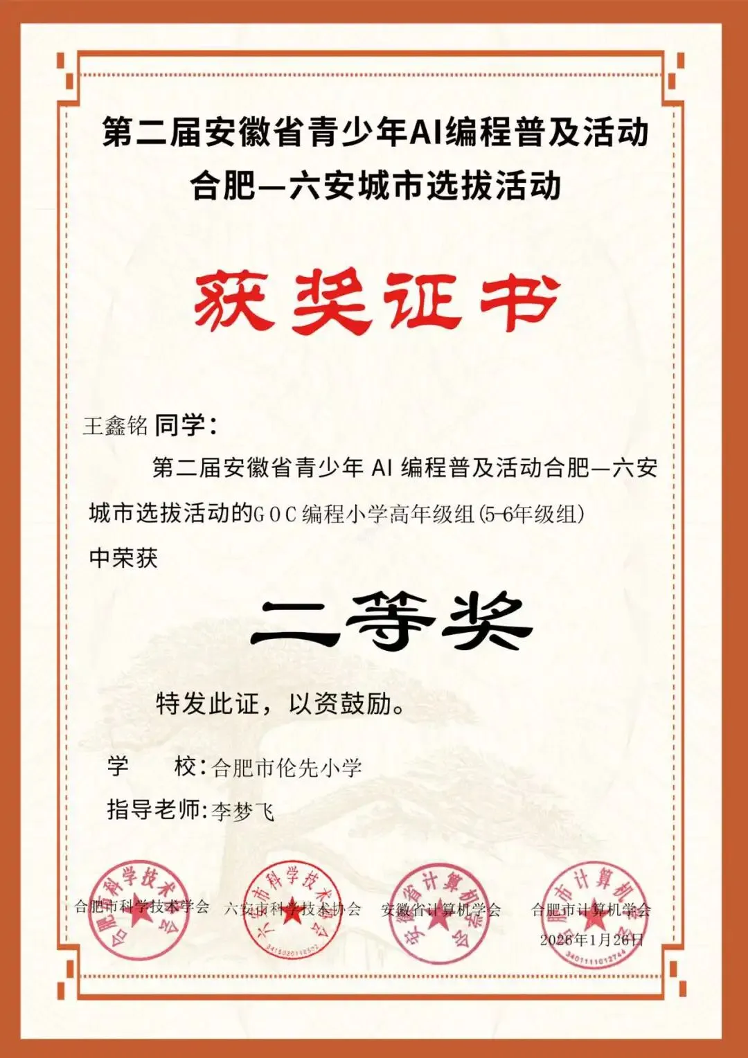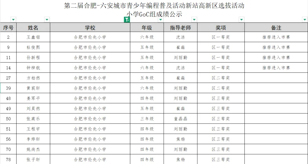 近日,第二届安徽省青少年AI编程普及活动合肥-六安城市选拔活动及后续市级赛事圆满落幕。合肥市伦先小学共有13名学生参赛,他们凭借扎实的编程基础、敏捷的逻辑思维和出色的现场表现,在比赛中屡获佳绩,为学校赢得了荣誉!