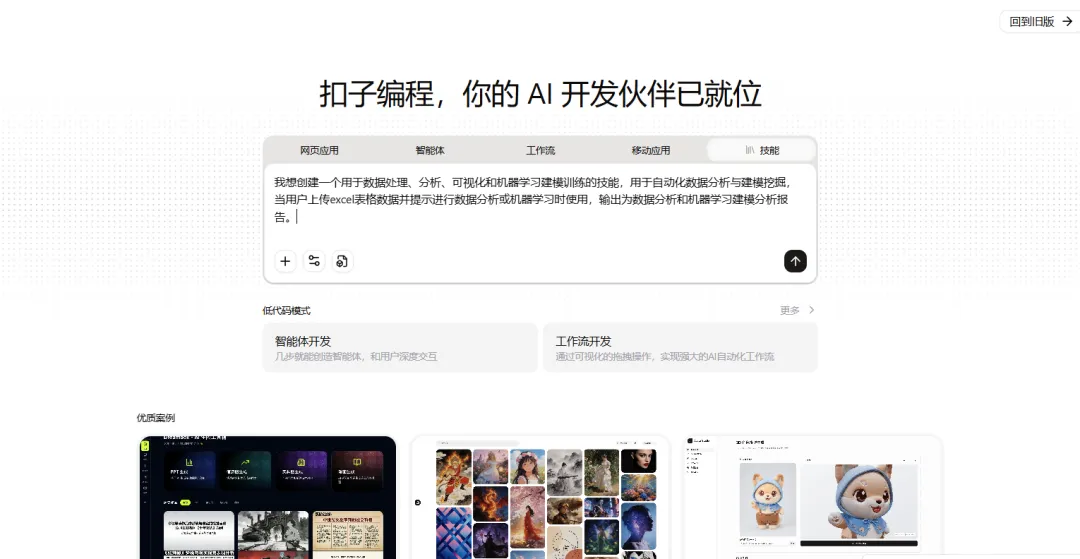 在以前,你要开发一个软件,得懂 Python,得懂服务器,得懂前端后端数据库。现在,你只需要清楚地描述你的需求,它就能帮你生成四种东西:智能体 (Agent):即问即答的机器人,或者能跑复杂任务的超级助理。工作流 (Workflow):把一堆乱七八糟的步骤串成一条线,比如 “搜索 - 总结 - 发邮件”。技能 (Skill):今天的主角。一个个封装好的能力包,像乐高积木一样。网页应用 (Web App):真的就是那种有界面、有按钮、能部署上线给别人用的网站。低代码是你拖拖拽拽,把组件拼起来。而AI 编程是你说 “我要一个能分析财报的网页”,它直接给你把代码写出来,环境配好,数据库连上,甚至连部署都给你做好了。你不需要在本地装 Node.js,不需要管 Python 版本冲突,不需要买服务器,也不需要配置 HTTPS 证书。打开浏览器就能写,点一下 “部署” 就上线。实用部分:怎么把它用成 “生产力”