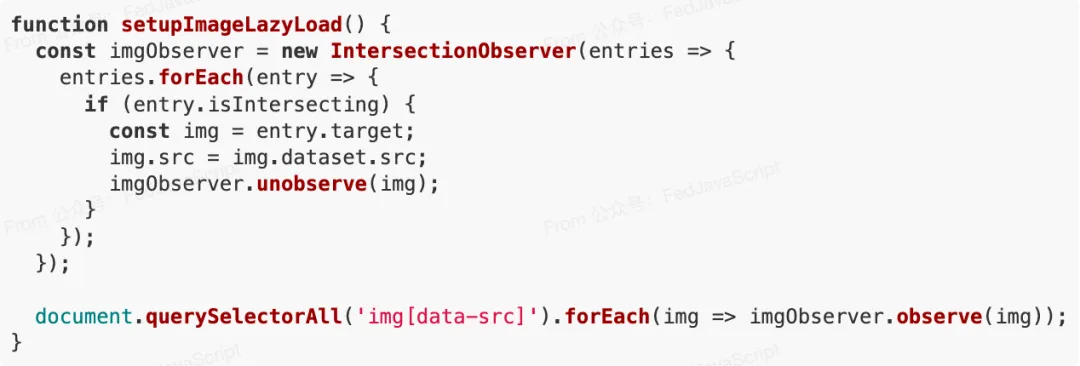 而IntersectionObserver是浏览器原生提供的API,它能够异步观察目标元素与视口的交叉状态,只在需要时触发回调,极大减少了不必要的计算。