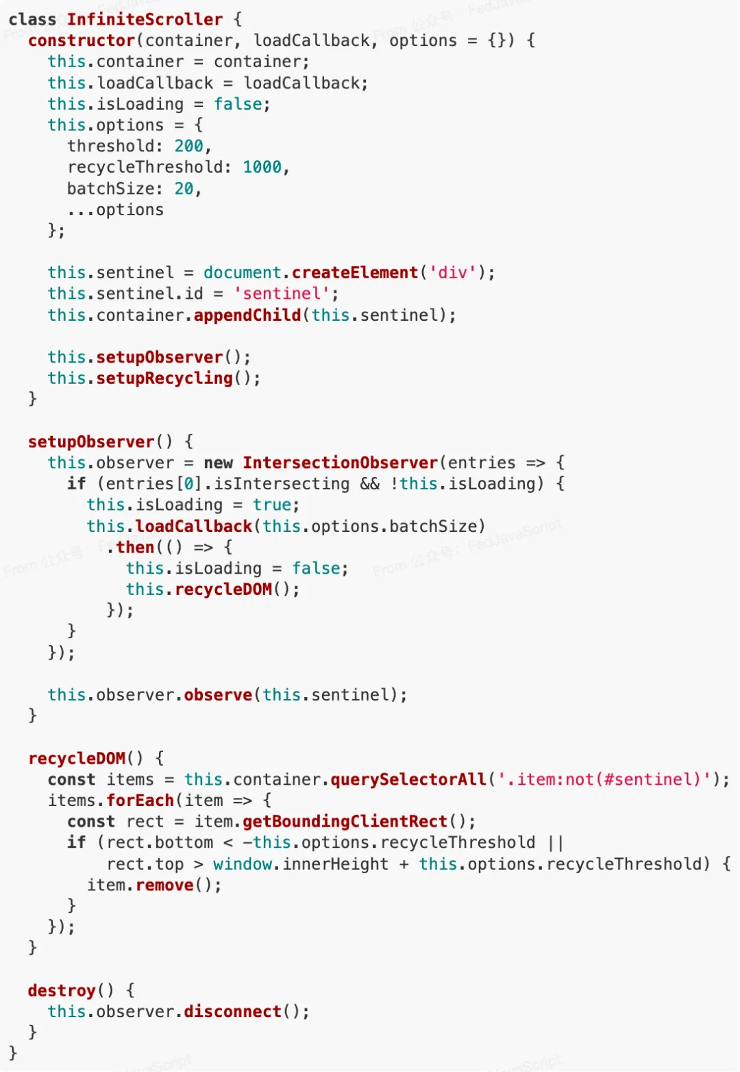 下面是经过优化的无限滚动核心代码: