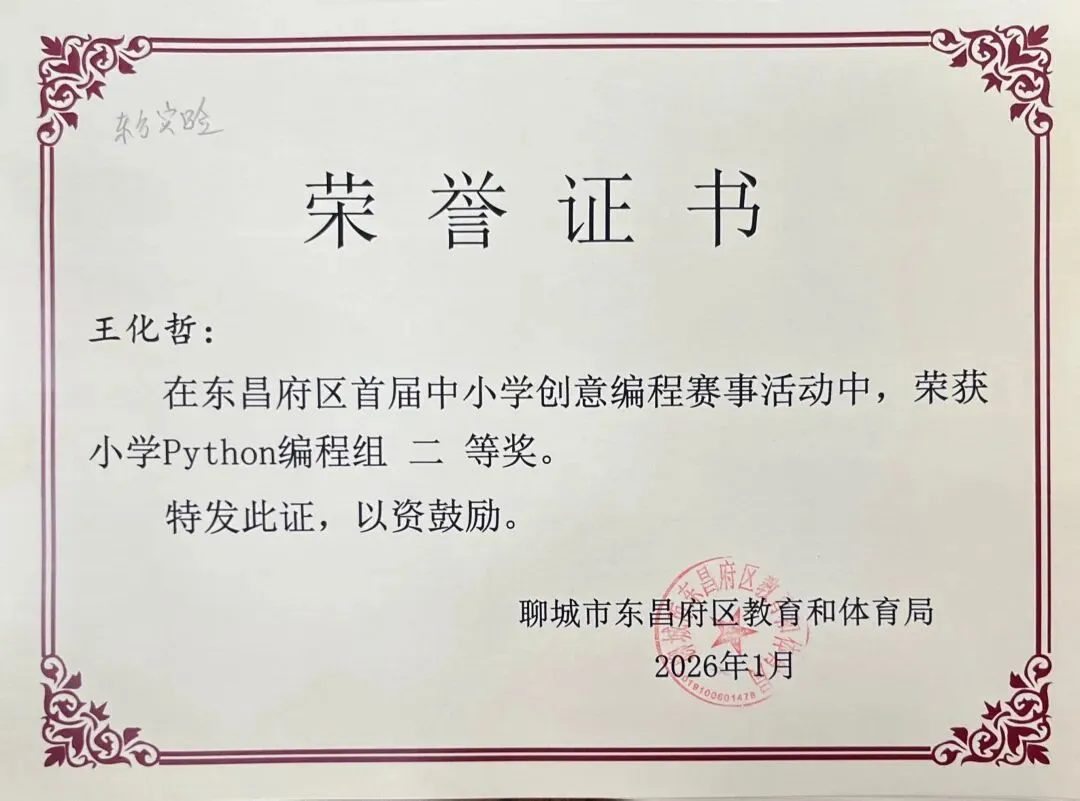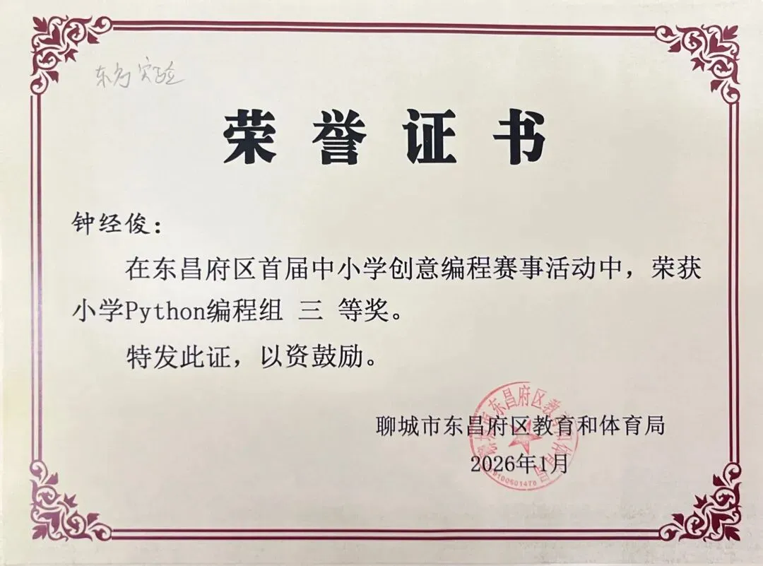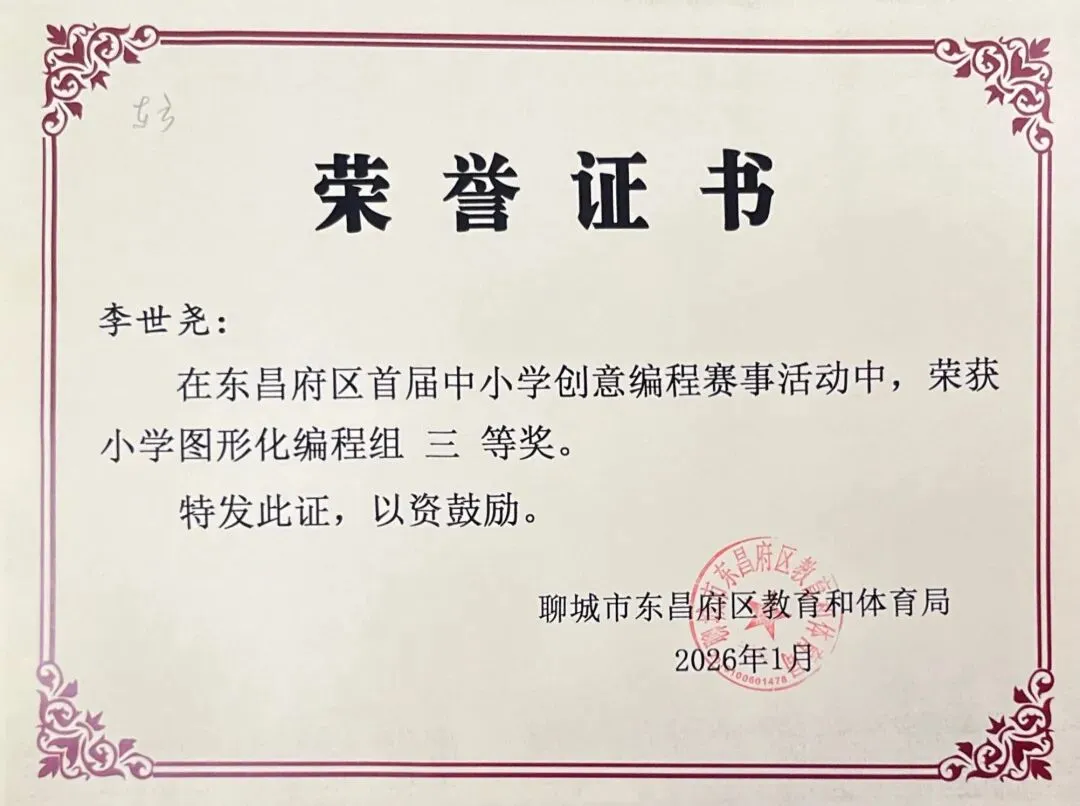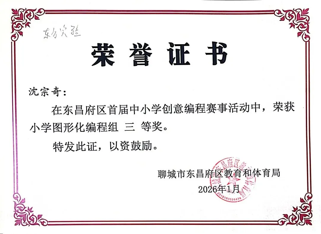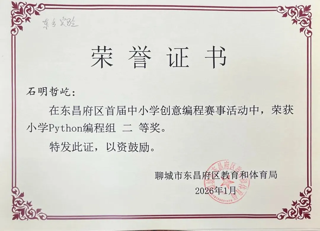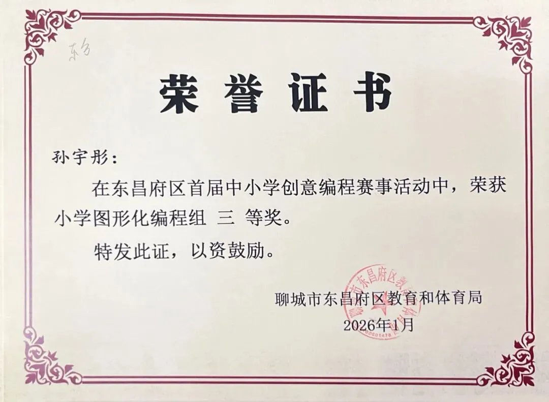 近日,聊城市东昌府区教育和体育局公布首届中小学创意编程赛事获奖名单。东方学子表现优异,在小学图形化编程、Python编程及初中C++等多个赛项中屡获佳绩,累计三十余人次荣获一、二、三等奖,展现出集团在科创教育领域的扎实积累与育人成效。
