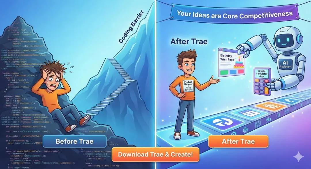 Trae 这样的工具,把软件开发的门槛,从“珠穆朗玛峰”直接夷平到了“家门口的台阶”。 只要你敢想,你就能做。