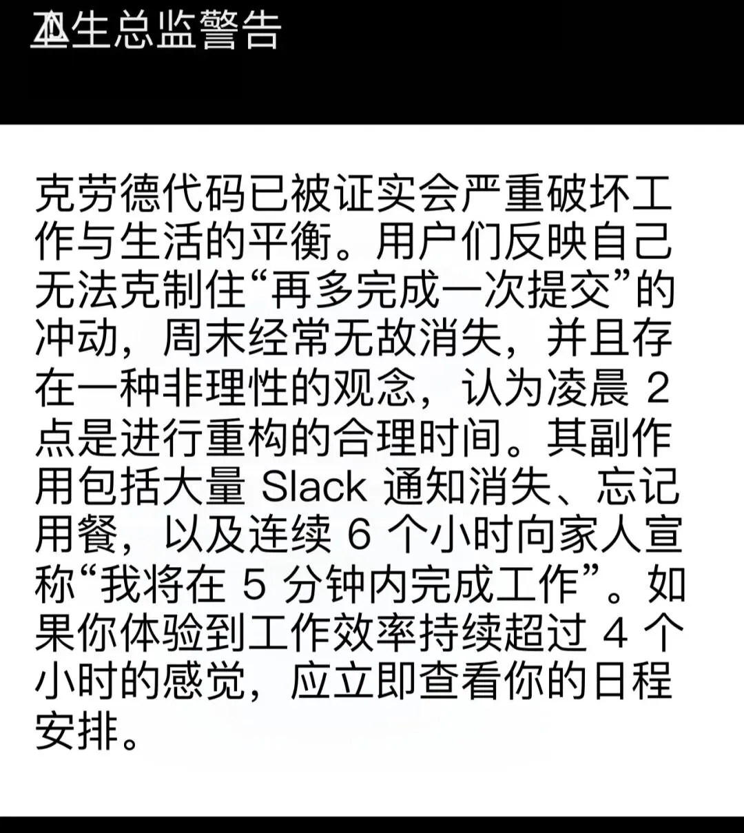 - 一旦习惯 AI 的高效,手动编程会感到"痛苦而缓慢"