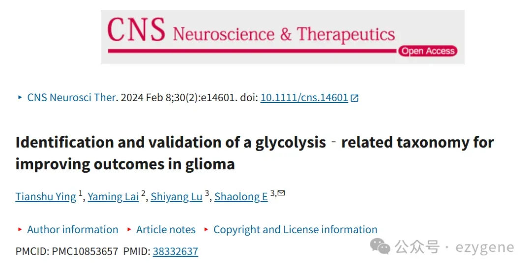 研究概述:基于糖酵解相关分类的胶质瘤预后改善及治疗策略探索本研究发表于《CNS Neuroscience & Therapeutics》,聚焦于胶质瘤这一成人中枢神经系统最常见且致命的原发性脑肿瘤。尽管当前采用手术、化疗及放疗联合治疗,胶质瘤患者的预后仍极不乐观,尤其是复发与转移患者,其长期生存率依然有限。本研究从糖酵解代谢重编程的角度切入,通过系统分析糖酵解相关基因在胶质瘤中的作用,构建稳定的预后分类模型,并探索潜在的治疗靶点,为胶质瘤的精准治疗提供新的分子基础。技术路线特点