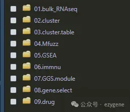 第二个文件夹:主要是针对TCGA数据进行聚类分析,这里使用了24种顶级聚类方法第三个文件夹:对验证集使用训练集得到的差异基因重新聚类这里主要使用的是MOVICS进行的第四个文件夹:差异基因的筛选和富集分析,主要复现fig4的两张图第五个文件夹:做GSEA分析,主要完成fig5的图第七个文件夹:风险模型的构建和ROC曲线的绘制,主要复现fig7第八个文件夹:完成关键基因的筛选,这里我们选择了另一种方法筛选关键基因(这里使用的是GOsemsim)如何免费获取代码,只需购买10人共享服务器即可免费获取,购买前需咨询小白(微信:ShenxinBS001),机器上架时间,10人共享服务器不一定是现机哈!