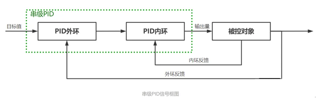 //此处需要插入上面的单级PID相关代码//串级PID的结构体,包含两个单级PIDtypedef struct{ PID inner;//内环 PID outer;//外环 float output;//串级输出,等于inner.output}CascadePID;//串级PID的计算函数//参数(PID结构体,外环目标值,外环反馈值,内环反馈值)voidPID_CascadeCalc(CascadePID *pid,float outerRef,float outerFdb,float innerFdb){ PID_Calc(&pid->outer,outerRef,outerFdb);//计算外环 PID_Calc(&pid->inner,pid->outer.output,innerFdb);//计算内环 pid->output=pid->inner.output;//内环输出就是串级PID的输出}CascadePID mypid;//创建串级PID结构体变量intmain(){ //...其他初始化代码 PID_Init(&mypid.inner,10,0,0,0,1000);//初始化内环参数 PID_Init(&mypid.outer,5,0,5,0,100);//初始化外环参数 while(1)//进入循环运行 { float outerTarget=...;//获取外环目标值 float outerFeedback=...;//获取外环反馈值 float innerFeedback=...;//获取内环反馈值 PID_CascadeCalc(&mypid,outerTarget,outerFeedback,innerFeedback);//进行PID计算 设定执行机构输出大小(mypid.output); delay(10);//延时一段时间 }}
