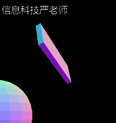 //将形状动起来var clock=new THREE.Clock();function animate(){ requestAnimationFrame(animate); var t=clock.getElapsedTime(); box.rotation.set(t,2*t,0); renderer.render(scene,camera);}animate();