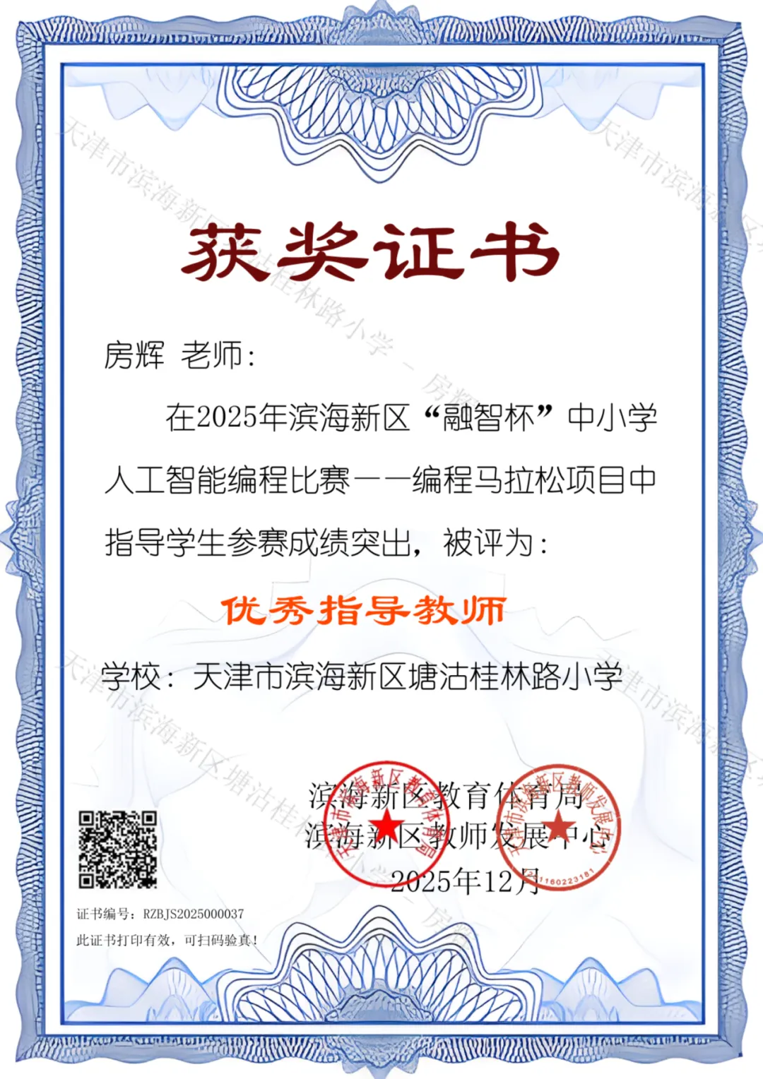此次比赛中,房辉老师和李秀瑞老师凭借丰富的教学经验、专业的技术指导与全身心的投入,全程陪伴学子们的赛前练习、攻克难点,用耐心与责任为学生的科技创新之路保驾护航,最终荣获“优秀指导教师”称号!