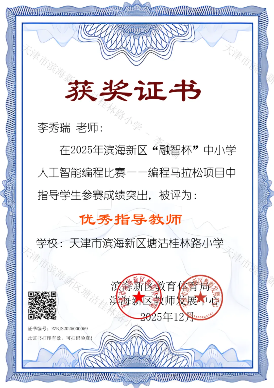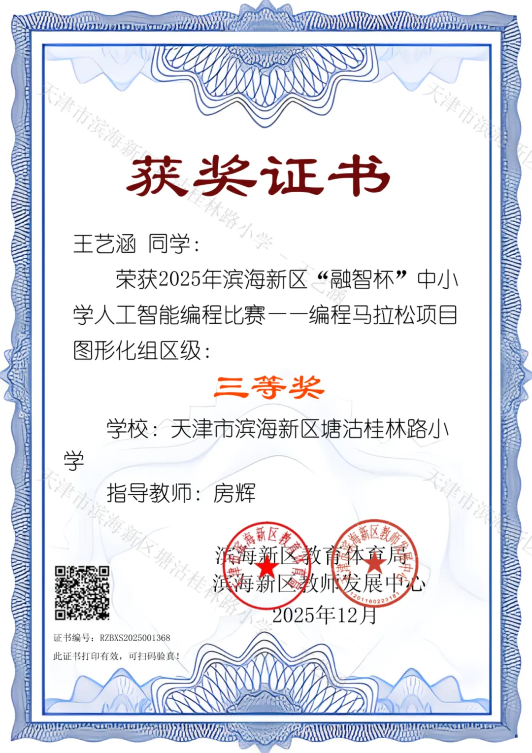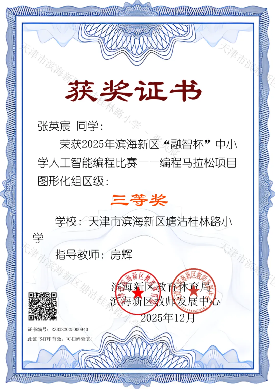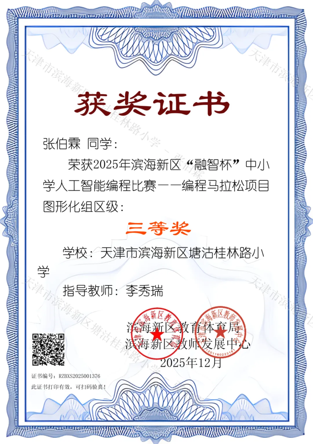 喜报!我校学生在滨海新区”融智杯“编程比赛中斩获佳绩!