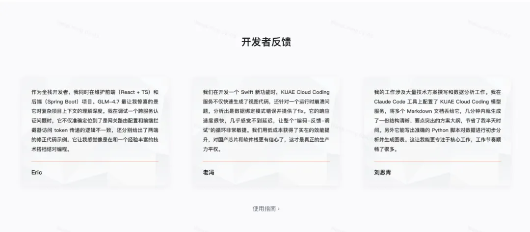 在测试期间,AI Coding Plan已获得来自多领域开发者的积极反馈。一位同时维护前端与后端项目的全栈开发者分享:“GLM-4.7最让我惊喜的是它对复杂项目上下文的理解深度。在调试一个跨服务认证问题时,它不仅能准确定位网关路由配置和前端拦截器Token传递的逻辑不一致,还分别给出了两端的修正代码示例,感觉像是在和一位经验丰富的技术搭档结对编程。”