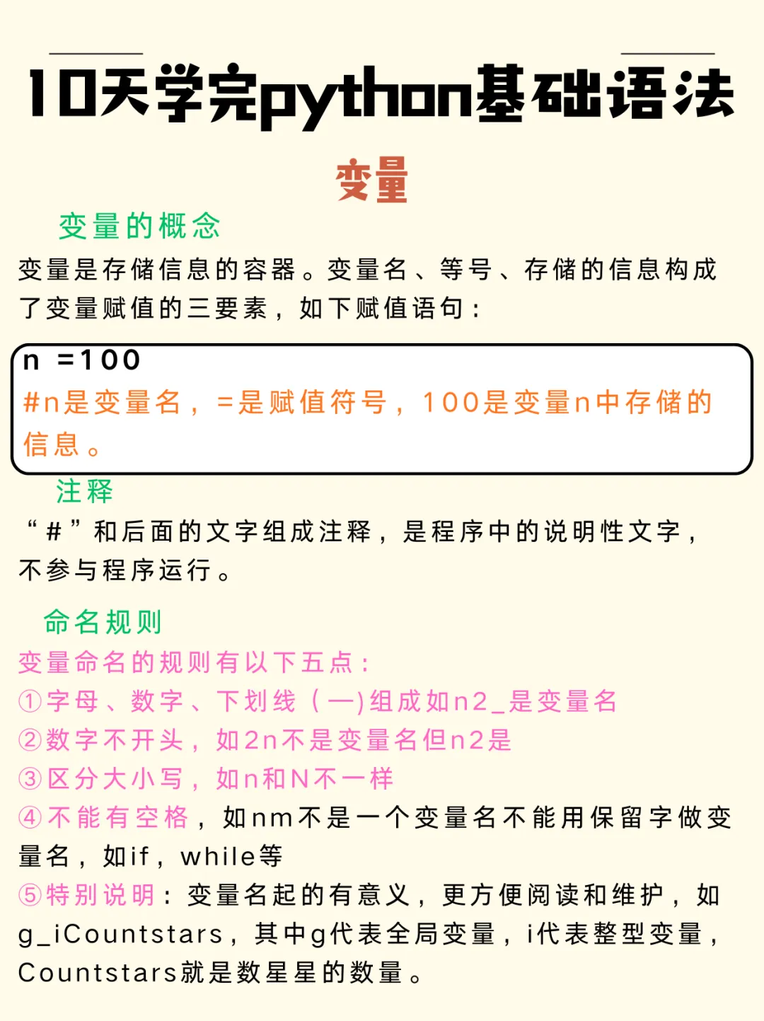 不能使用 Python 保留字作为变量名,如 if、while、for 等