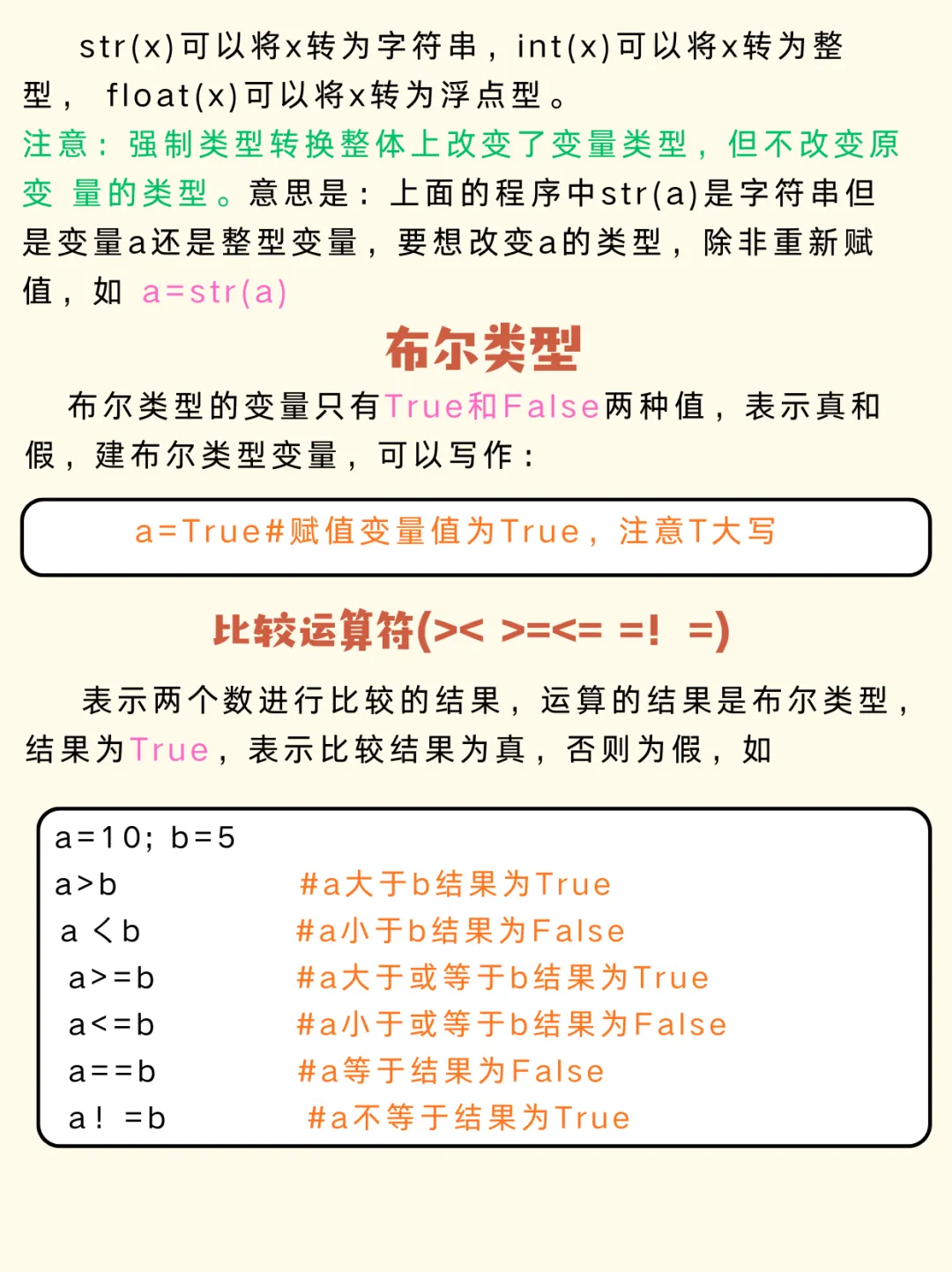 注意:强制类型转换整体上改变了变量类型,但不改变原变量的类型。意思是:上面的程序中str(a)是字符串,但是变量a还是整型变量,要想改变a的类型,除非重新赋值,如a = str(a)。#python#小白学python#编程#计算机#字符串