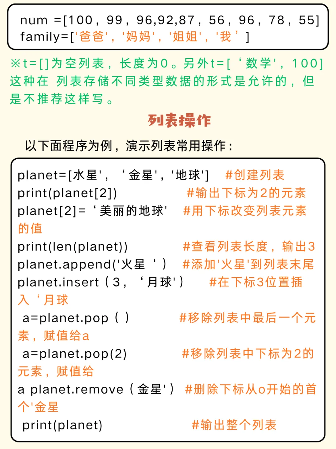 print(456) # 输出: 456print('你好', end='~') # 输出(不换行): 你好~msg = '示例'; print(msg) # 输出: 示例print('早安', '世界') # 输出: 早安 世界