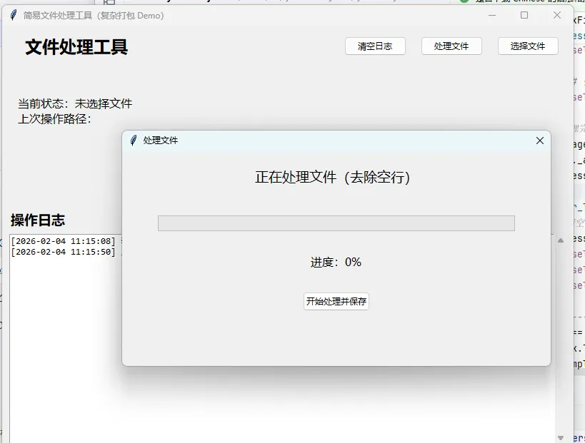 - 这个复杂程序包含「多窗口、文件操作、配置保存、进度条」,覆盖实际项目的常见场景,可直接打包运行。