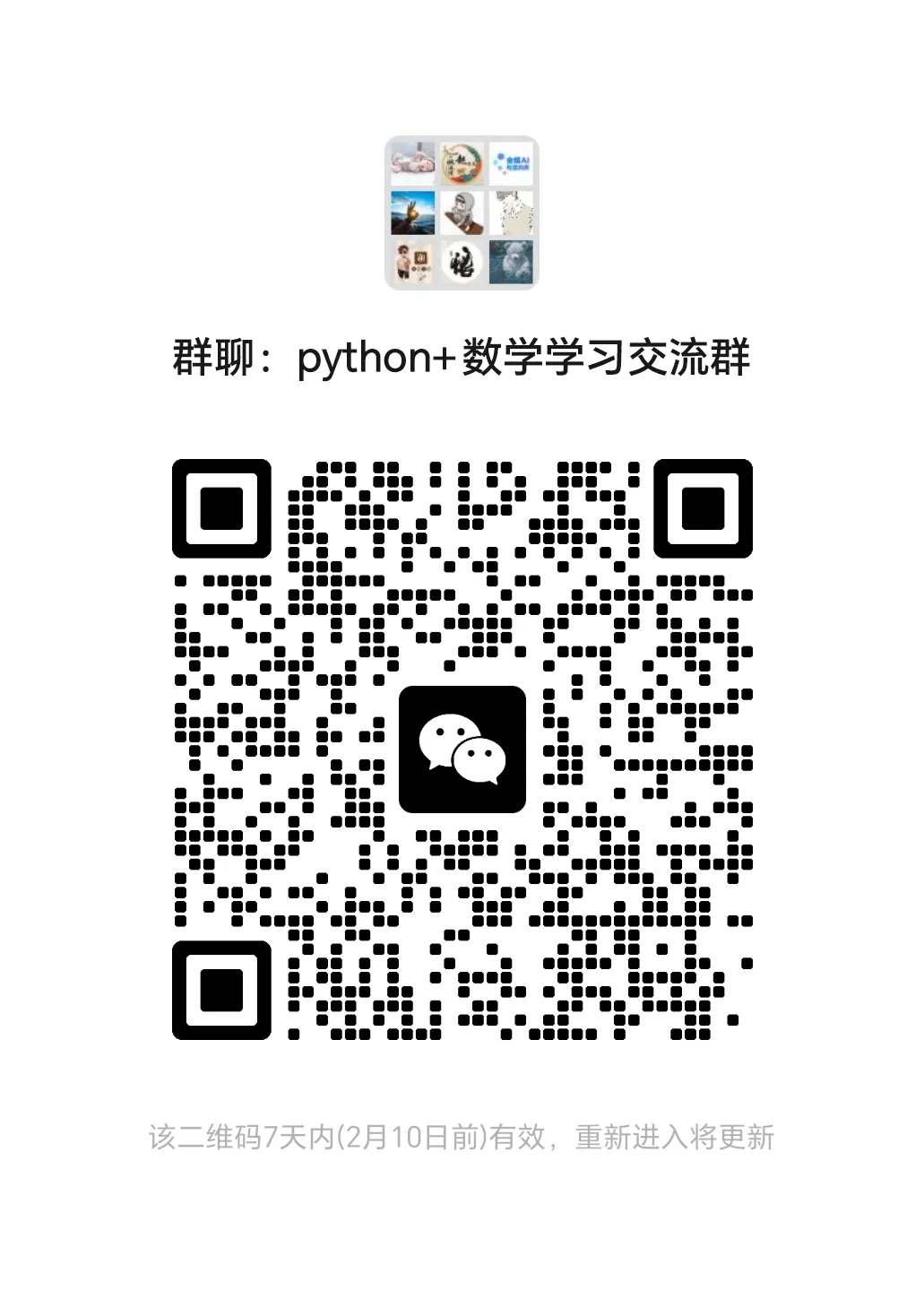 为了能和大家更直接地交流学习,我建了一个 Python + 数学 + AI 技术交流群,现在正式邀请你的加入。