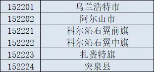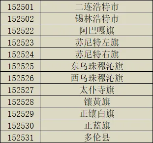 1983年,昭乌达盟撤销,设地级赤峰市。同时,县级赤峰市和赤峰县被撤销,组建了红山区、元宝山区、郊区。1993年,赤峰市郊区更名为松山区。1985年,哲里木盟设立了霍林郭勒县级市。1986年,通辽县被撤销,并入了通辽县级市管理。1999年,哲里木盟撤销,设地级通辽市。原县级通辽市撤销,设科尔沁区。2001年,伊克昭盟撤销,设鄂尔多斯市,原县级东胜市改设东胜区。2016年,东胜区划出部分街道,成立康巴什区。1983年,喜桂图旗撤销,设县级牙克石市;布特哈旗撤销,设扎兰屯市。1994年,额尔古纳左旗撤销,设县级根河市;额尔古纳右旗撤销,设额尔古纳市。2001年,呼伦贝尔盟撤销,设地级呼伦贝尔市,原县级海拉尔市改设海拉尔区。2013年,满洲里市扎赉诺尔矿区以呼伦贝尔市扎赉诺尔区备案,由满洲里市代管。2023年,扎赉诺尔区由呼伦贝尔市直接管理。2001年,巴彦淖尔盟撤销,设地级巴彦淖尔市,原县级临河市改设临河区。1971年,土默特右旗、固阳县,土默特左旗、托克托县分别划归包头市、呼和浩特市。1980年,苏尼特右旗、二连浩特市划归锡林郭勒盟。1990年,丰镇县撤县设市。1995年,和林格尔县、清水河县划归呼和浩特市。1996年,武川县、达尔罕茂明安联合旗分别划归呼和浩特市、包头市。2001年,乌兰察布盟撤销,设地级乌兰察布市,原县级集宁市改设集宁区。1980年恢复兴安盟和乌兰浩特市建置。1996年,设县级阿尔山市。152521,阿巴哈纳尔旗,1983年撤销,设锡林浩特市