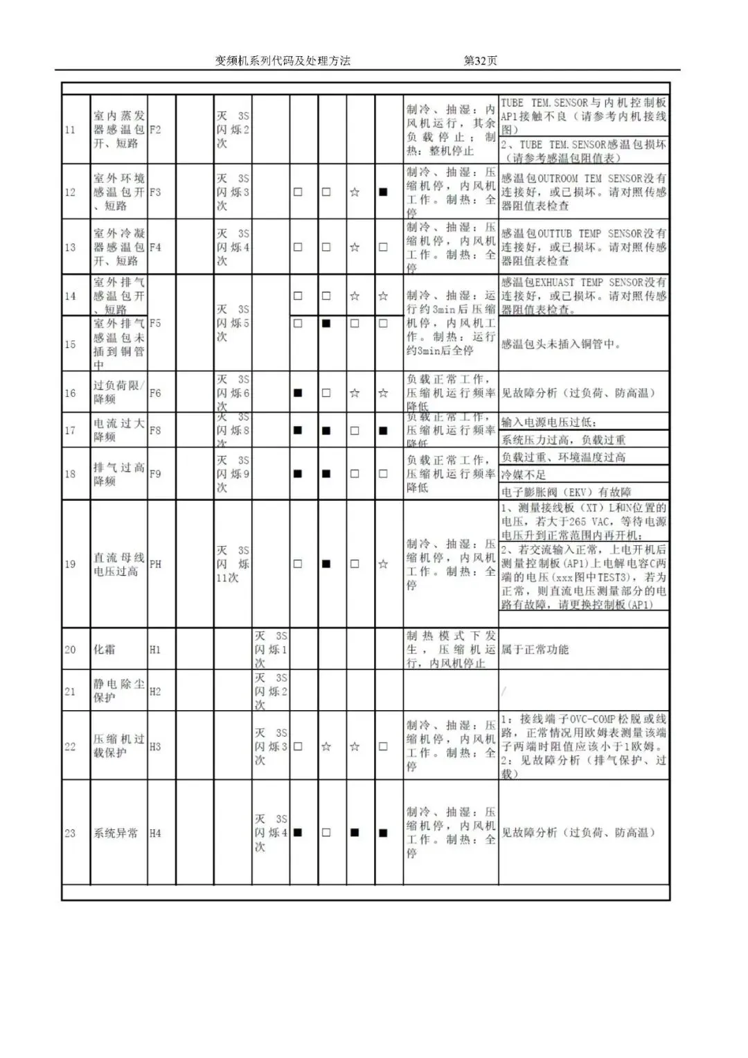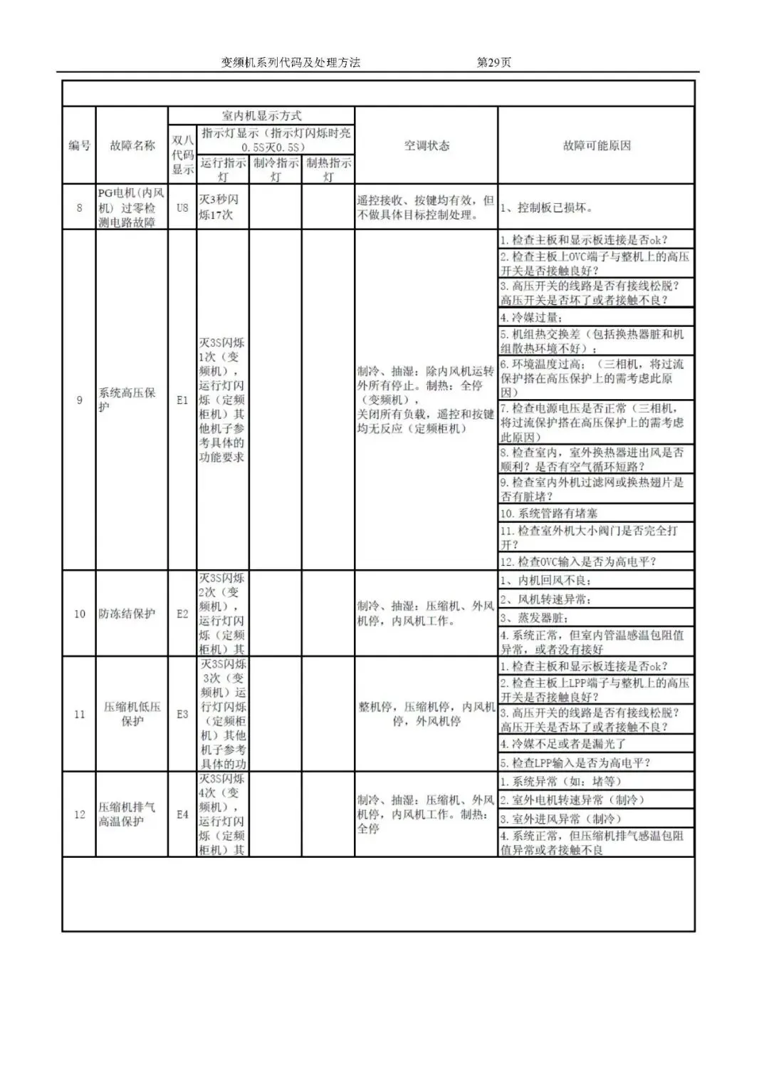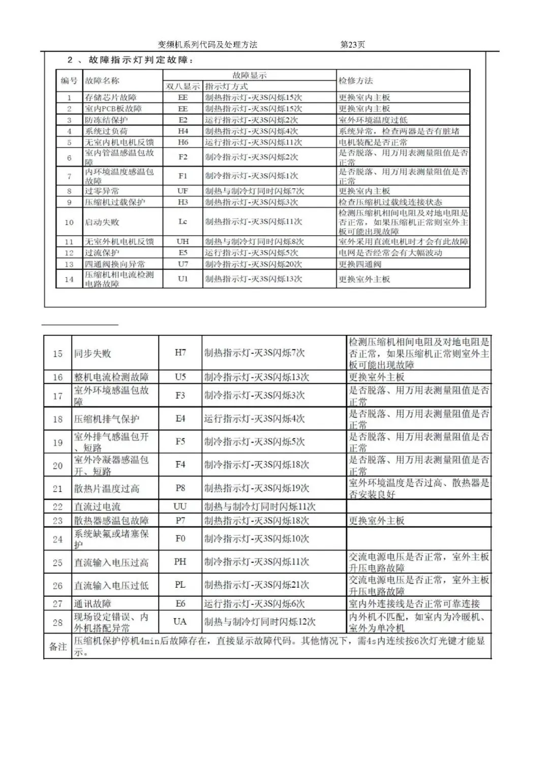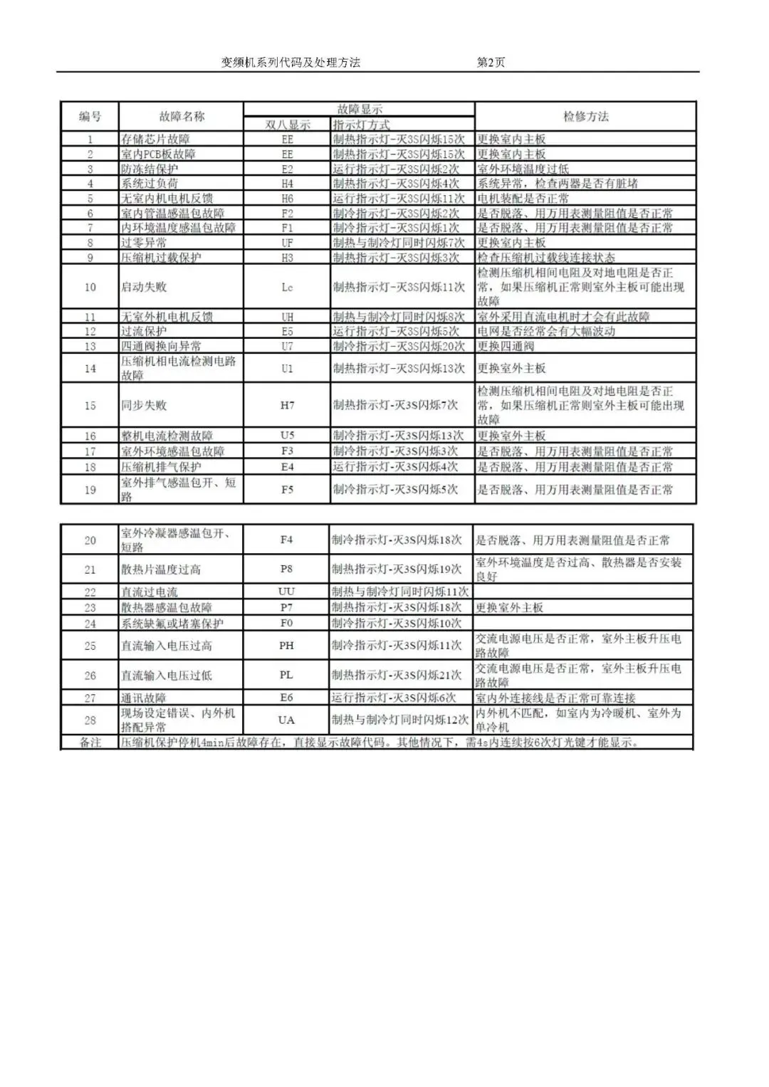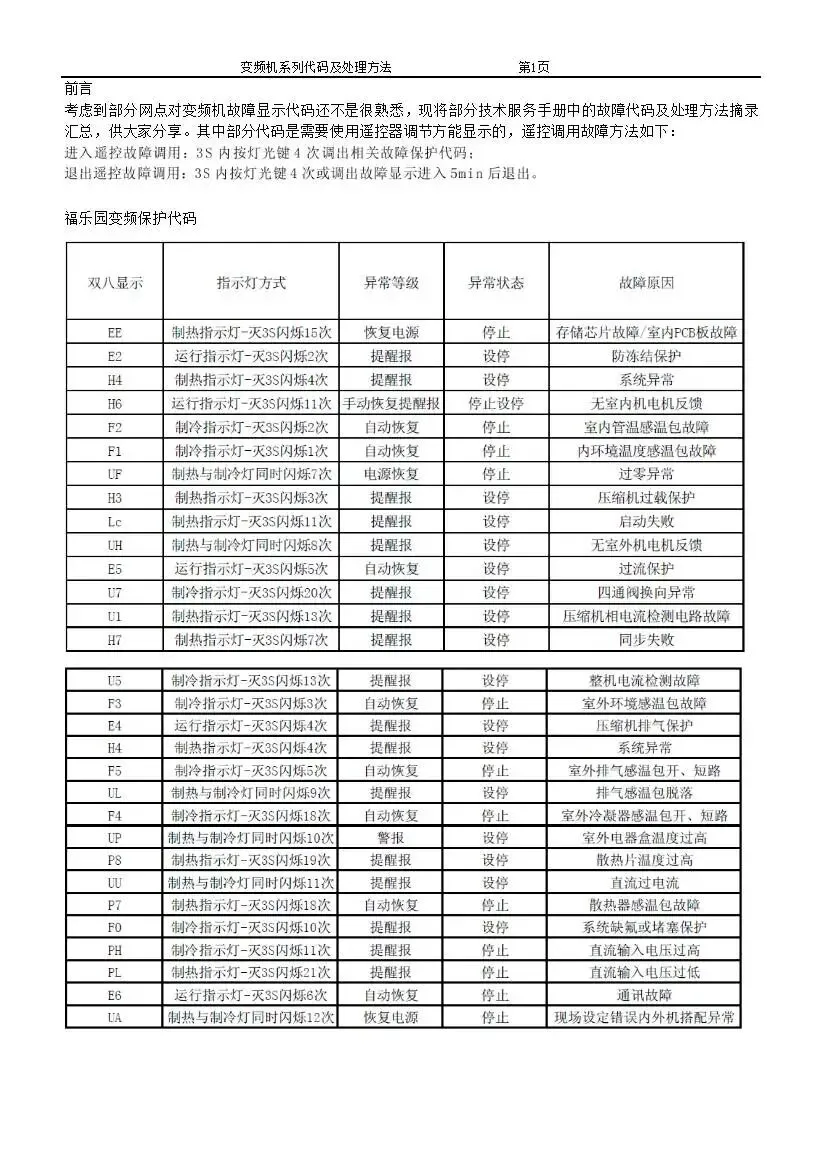 格力变频空调故障代码及处理方法