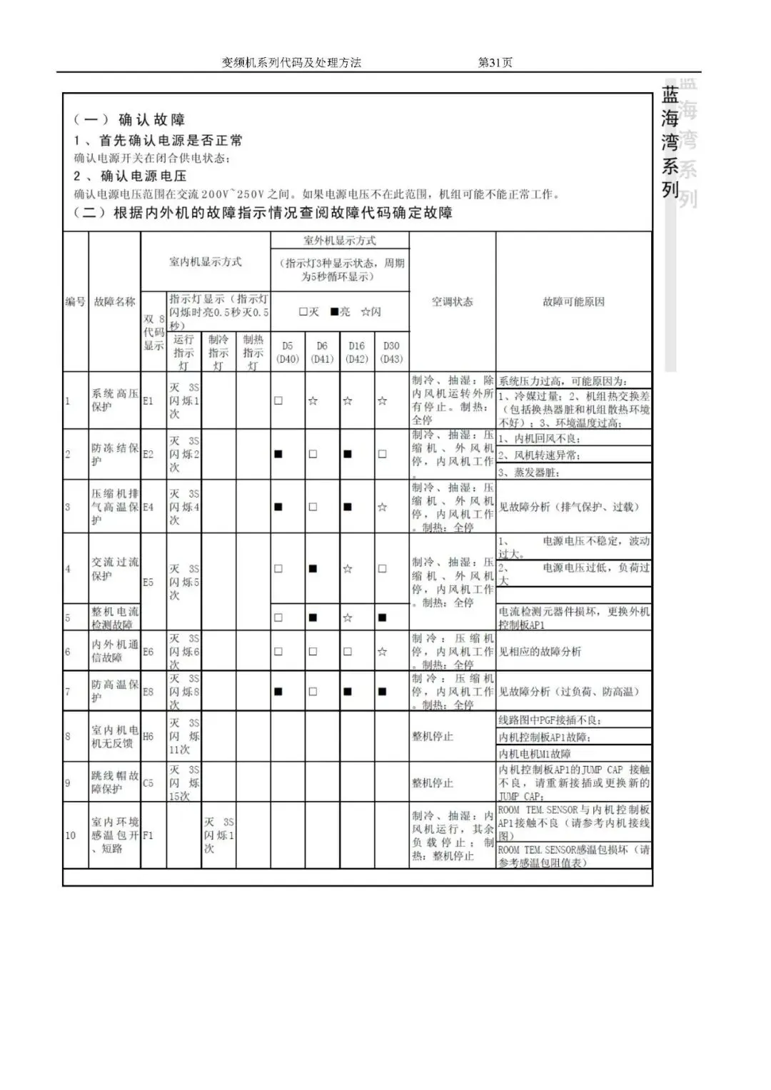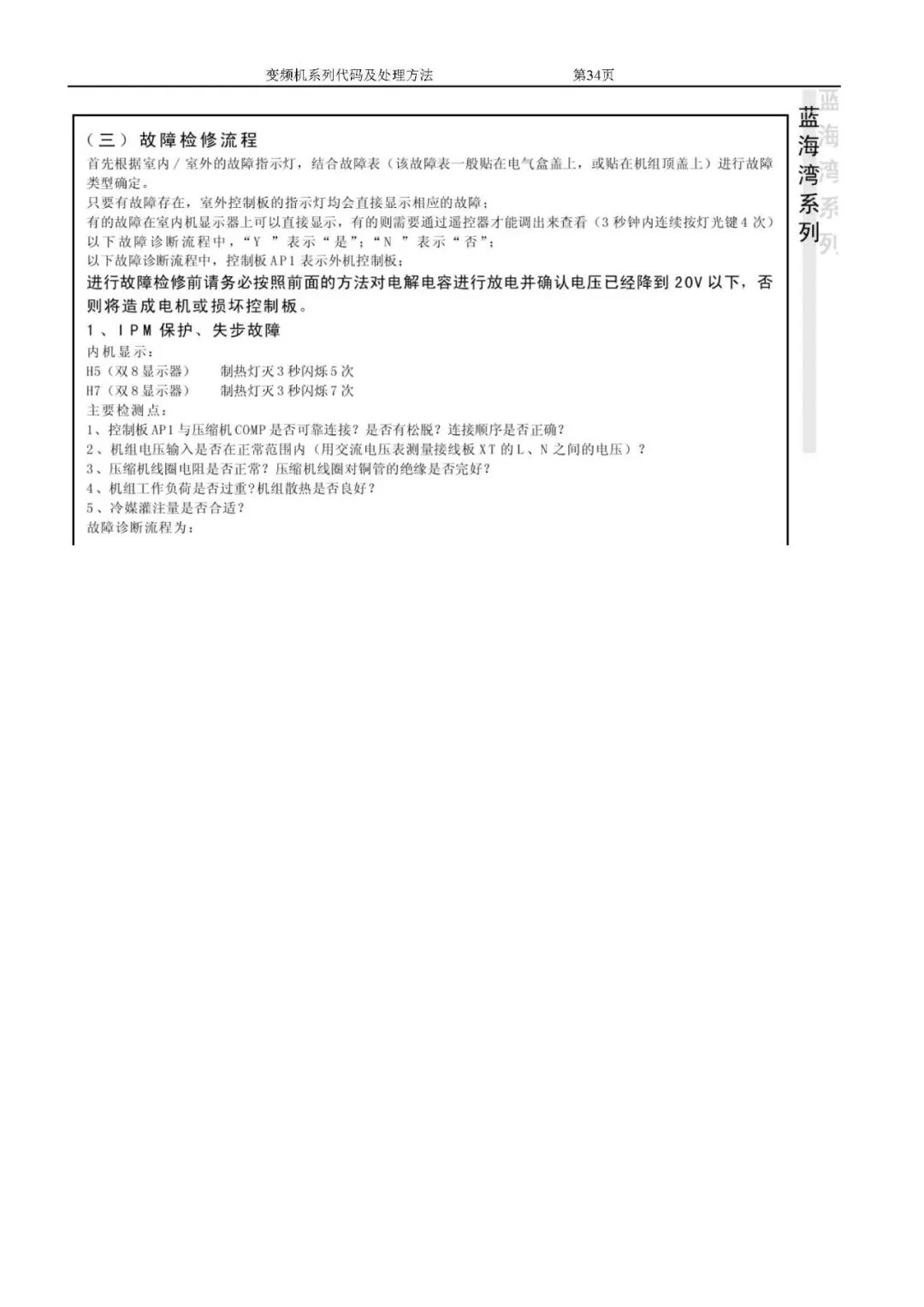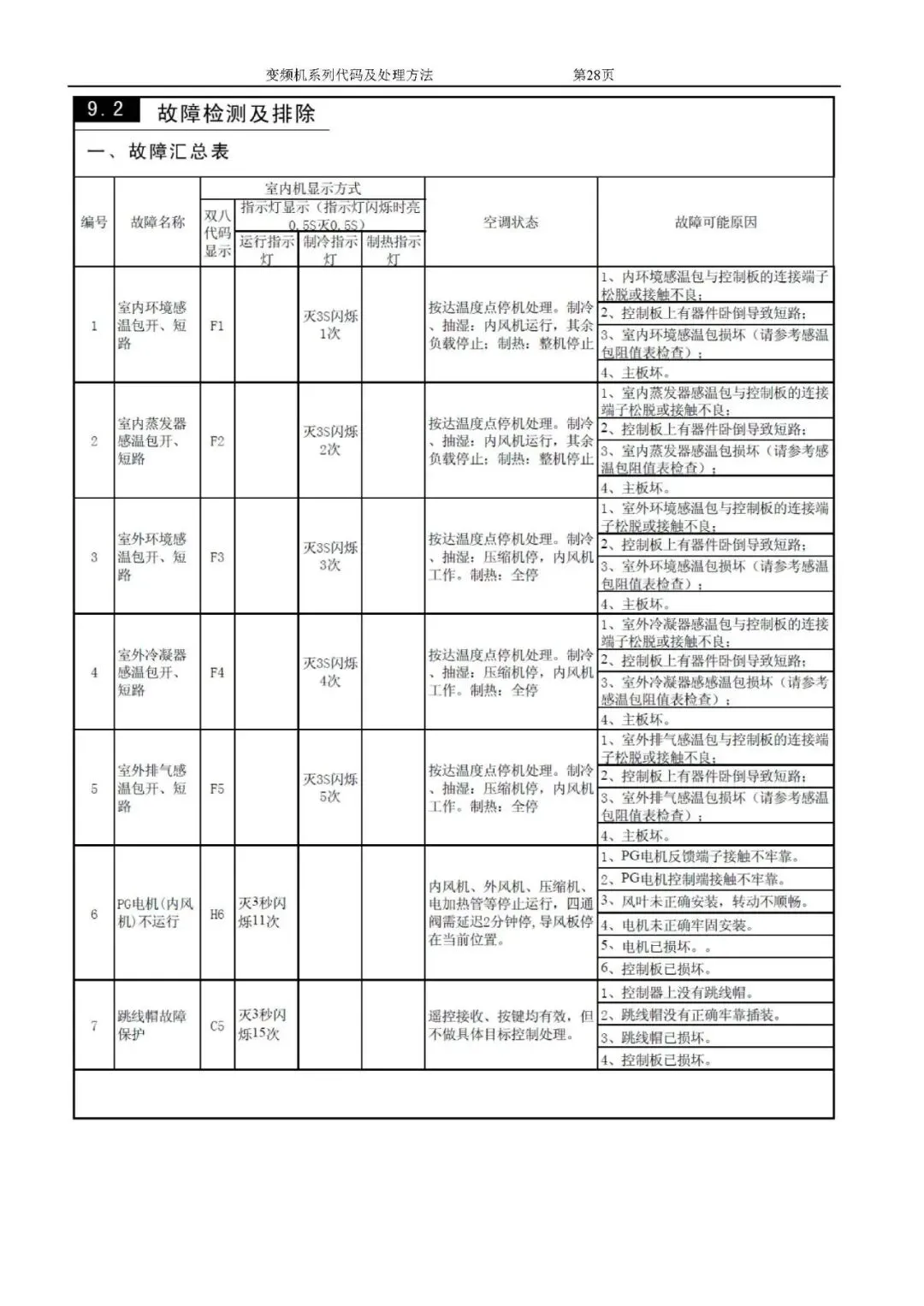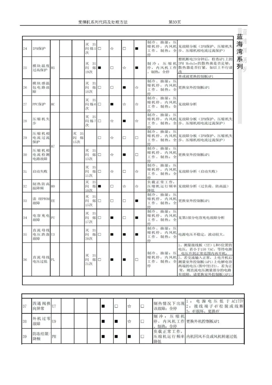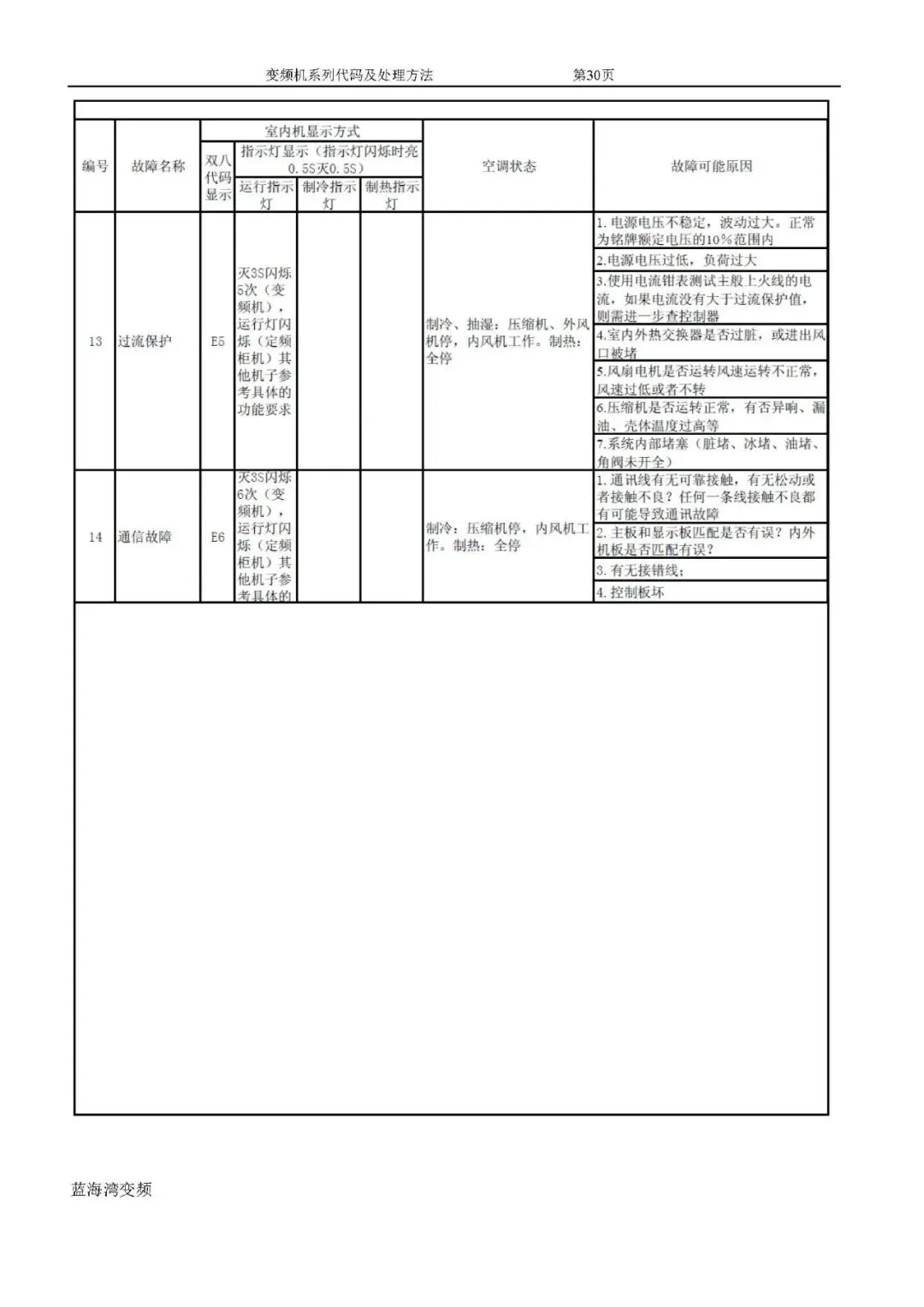 格力变频空调故障代码及处理方法