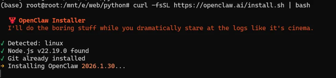$ curl -fsSL https://openclaw.ai/install.sh | bash