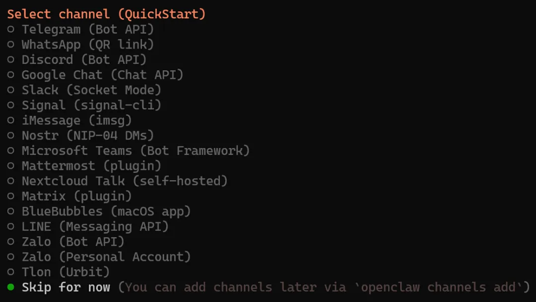 到现在为止,你就可以在本机使用openclaw了。但是如果你想远程通过通信软件来使用,比如通过飞书聊天来调用,就需要进行接下来的【接入飞书】这一步。