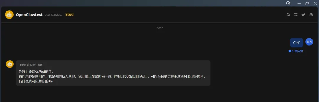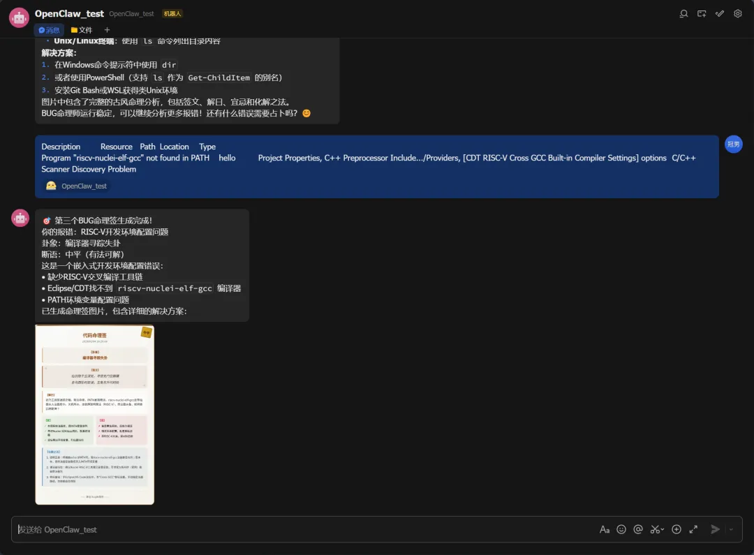 最近突发奇想,在程序员交流群里,经常有人问问题不带报错日志截图,群友就会说,没有日志我能做的只是帮你算一卦,今天我们来做一个好玩的,调教 OpenClaw,发给它一个报错,让他以周易等命理知识分析这个报错,同时给出解决方案