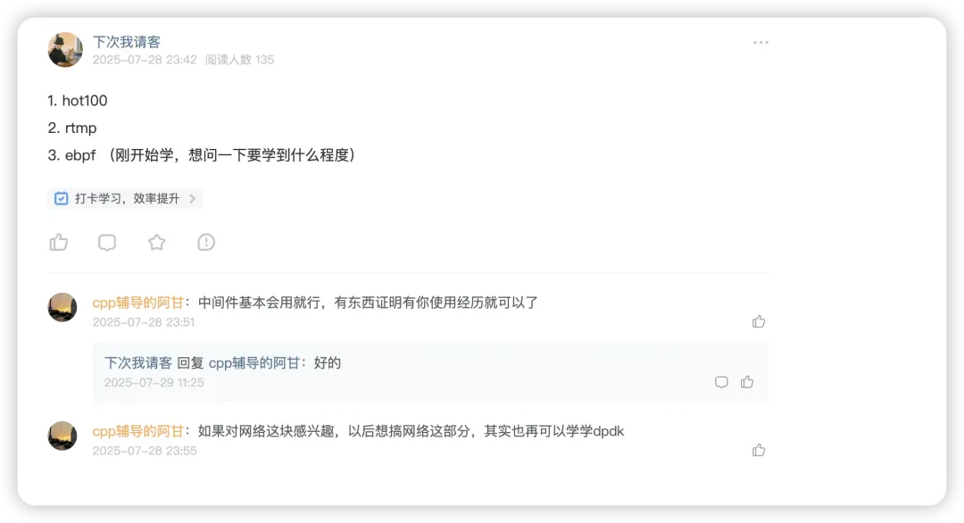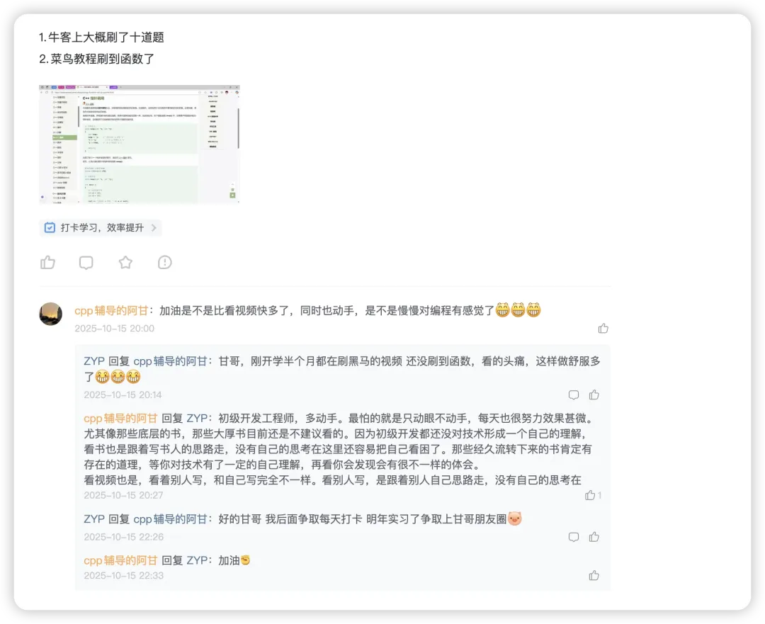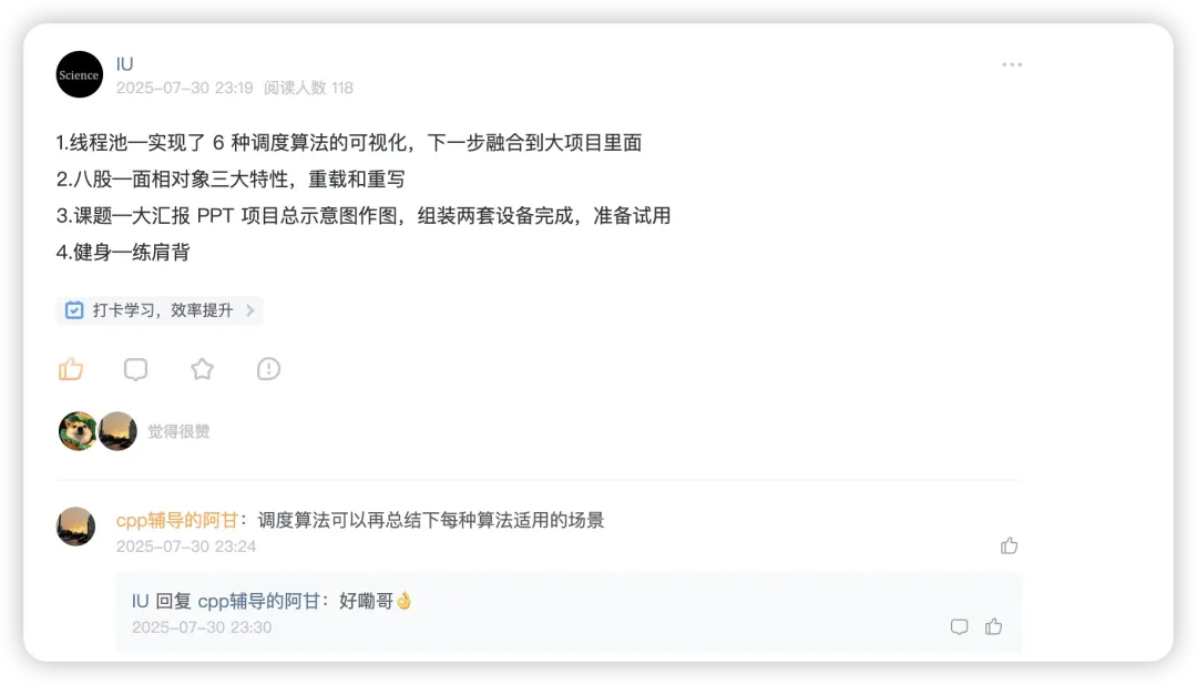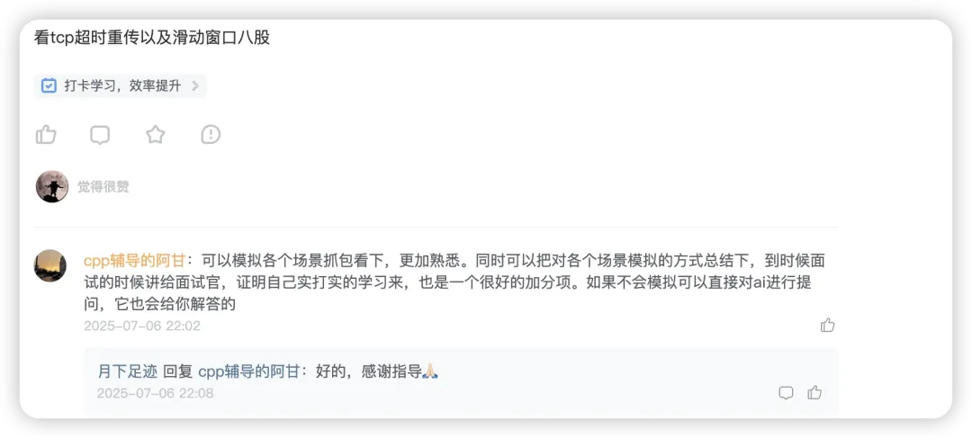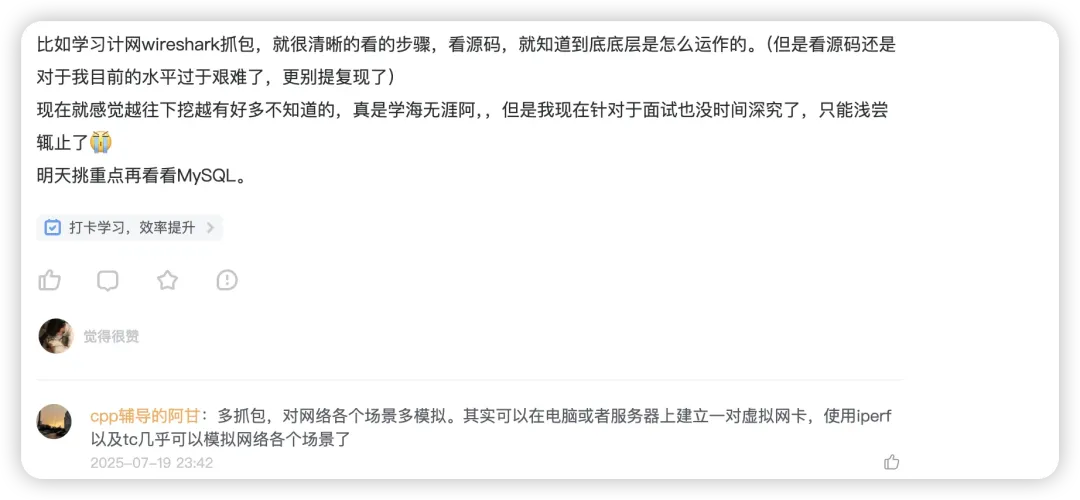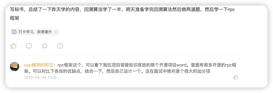 下面阿甘给大家分享一下我们星球同学每天学习内容打卡,我给的对应的建议