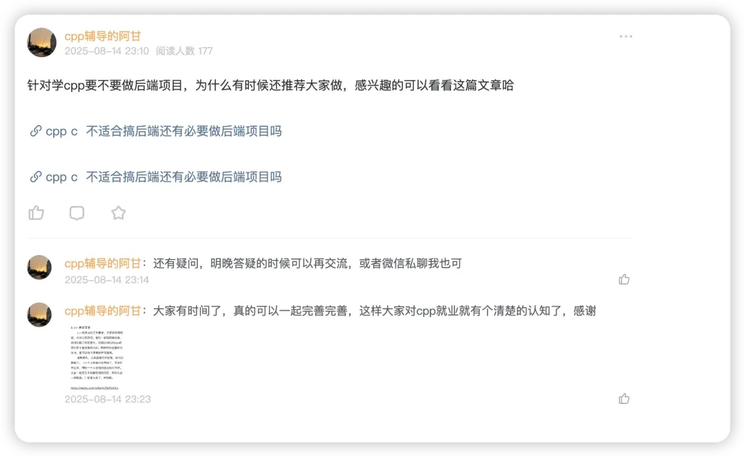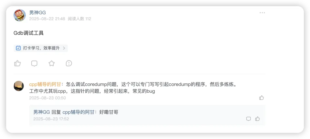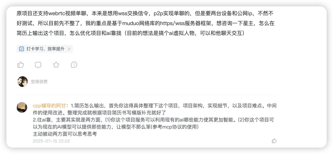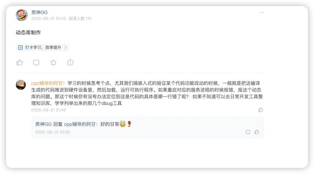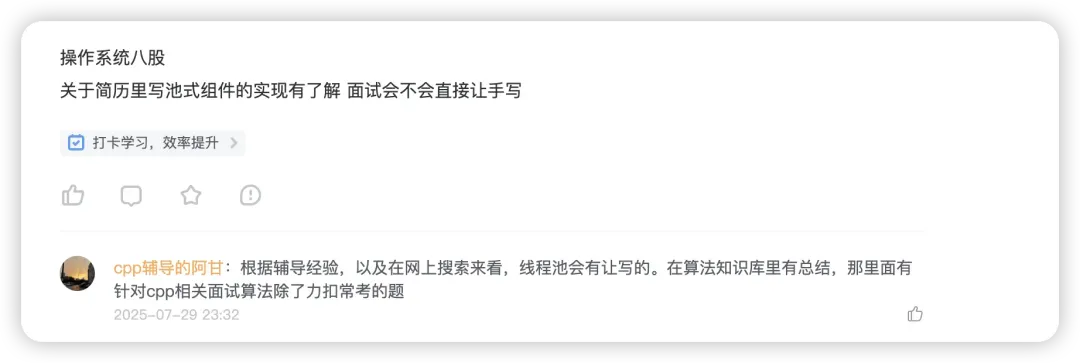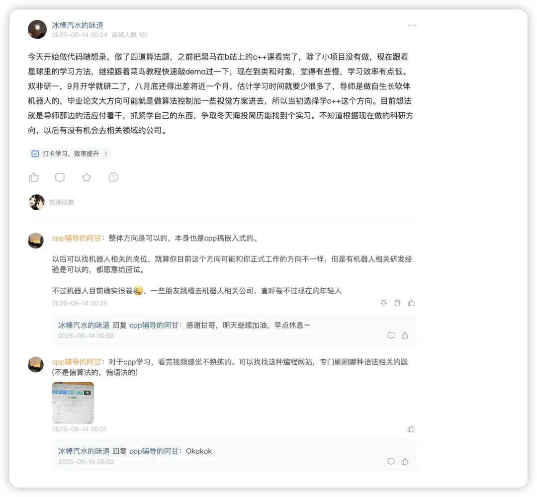 下面阿甘给大家分享一下我们星球同学每天学习内容打卡,我给的对应的建议