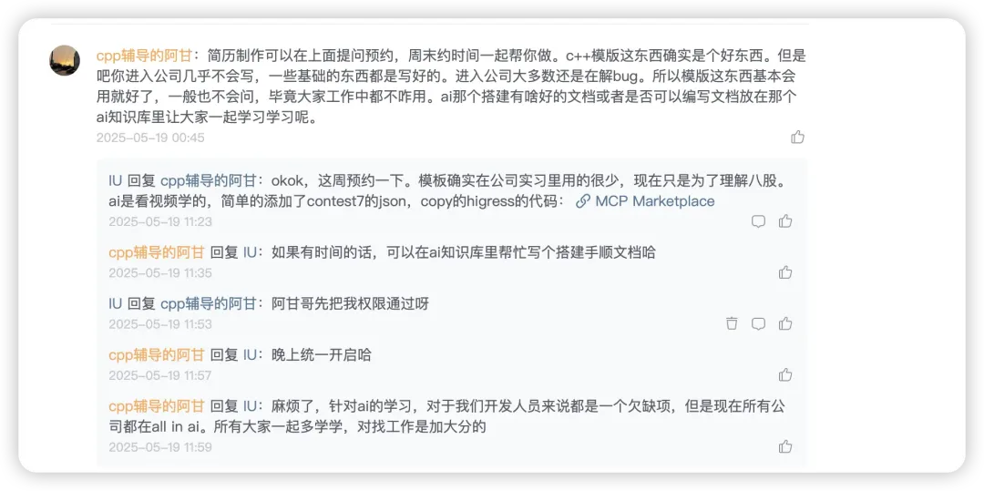 (5)星球提问简历修改,提供意见的同时,还会给安排一对一腾讯会议辅导