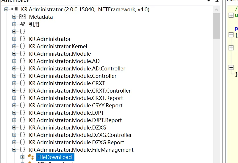 对应需要反编译分析的DLL文件也是KR.Administrator.dll。