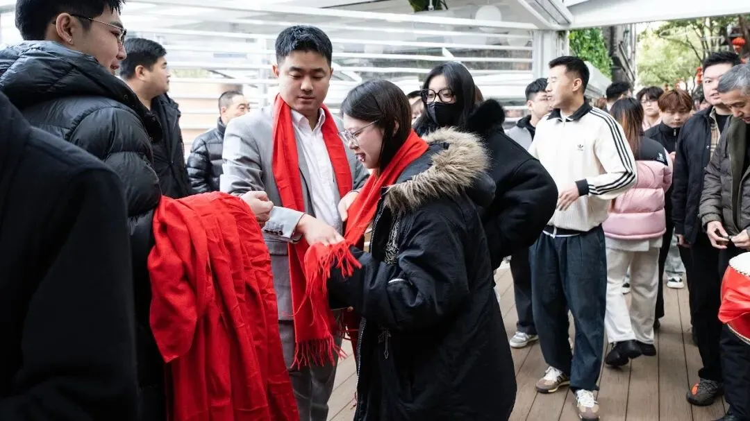 每一声问候,都伴随着一份心意递出。红围巾轻轻绕上肩颈,仿佛一缕暖流注入心间;抽奖券握在手中,满载着对幸运的期待;福气签轻轻一抽,是新一年美好的开端。