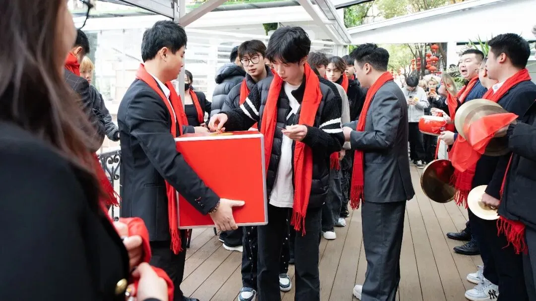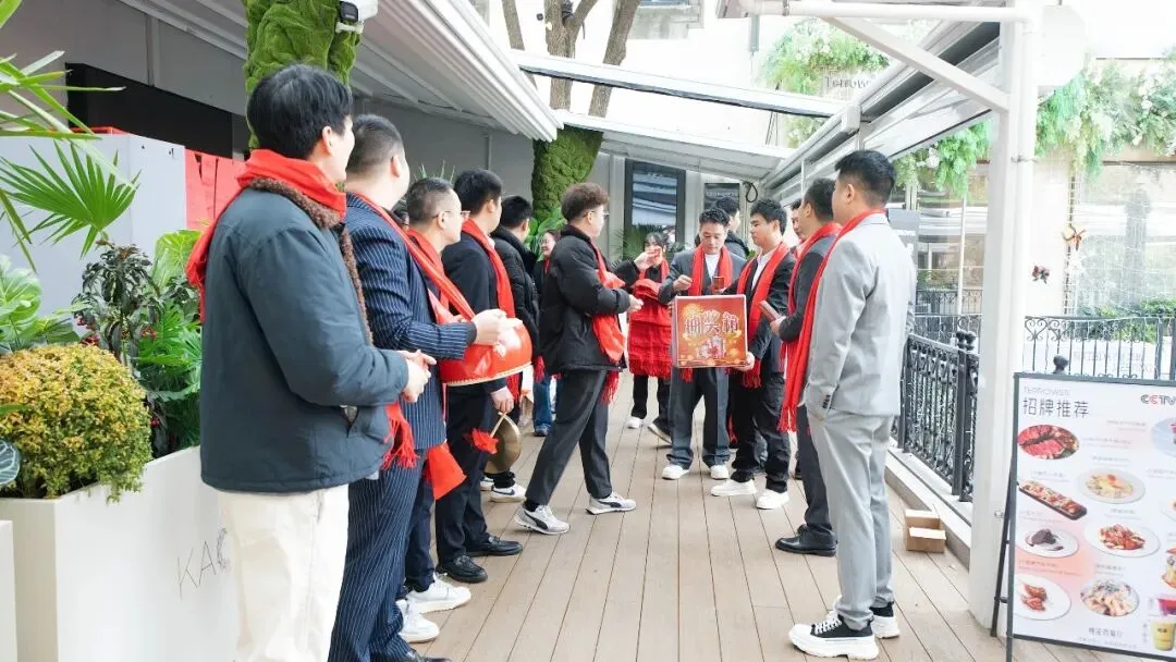 公司高管们身着正装,面带笑容,整齐列队迎接每一位家人入场。红围巾、抽奖券、福气签——一份份精心准备的新年礼,伴随着一声声“欢迎KAOS®WUXI家人!新年快乐!”,瞬间点燃了现场的温情与喜悦。
