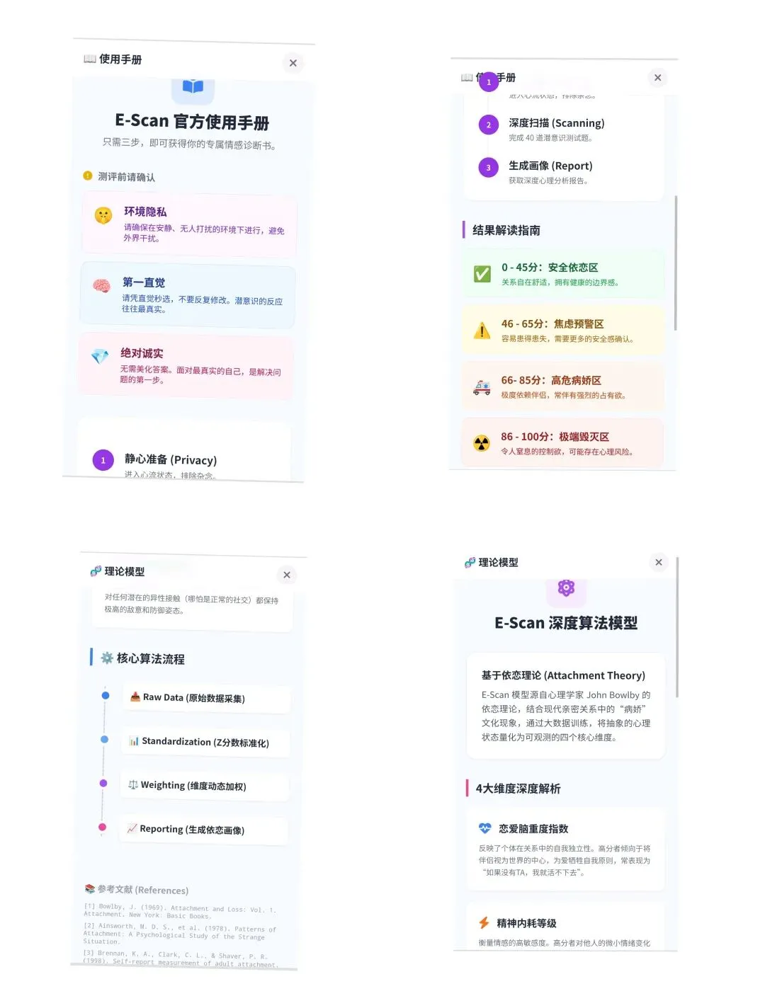 慢悠悠的与ai对话,然后测试产品。不到一天时间,我的复刻版产品——《E-Scan 恋爱依恋病娇度雷达》 诞生了。