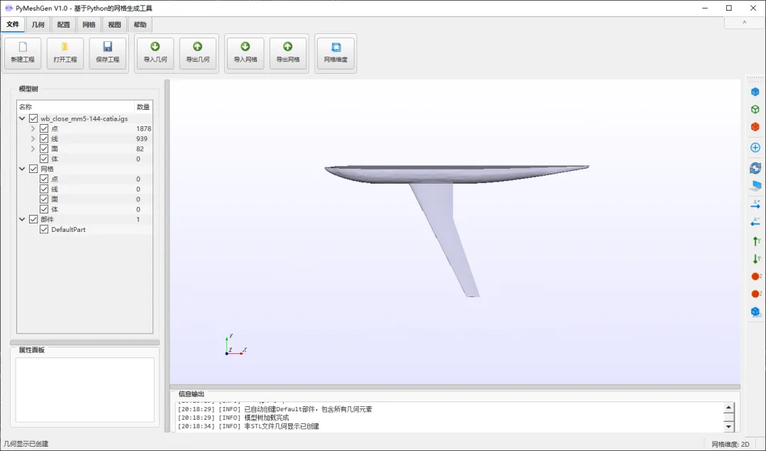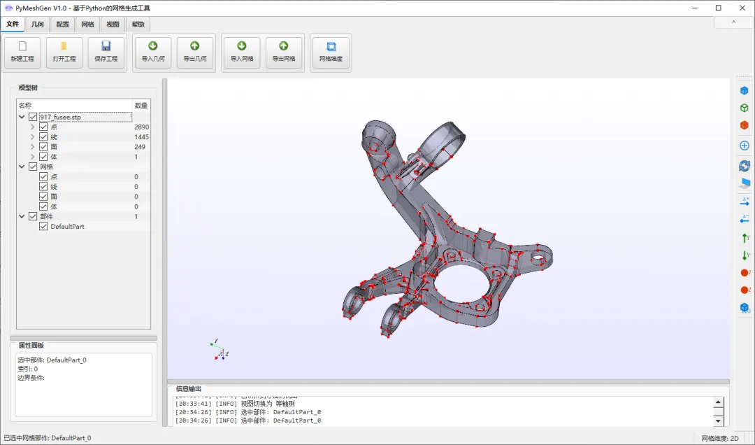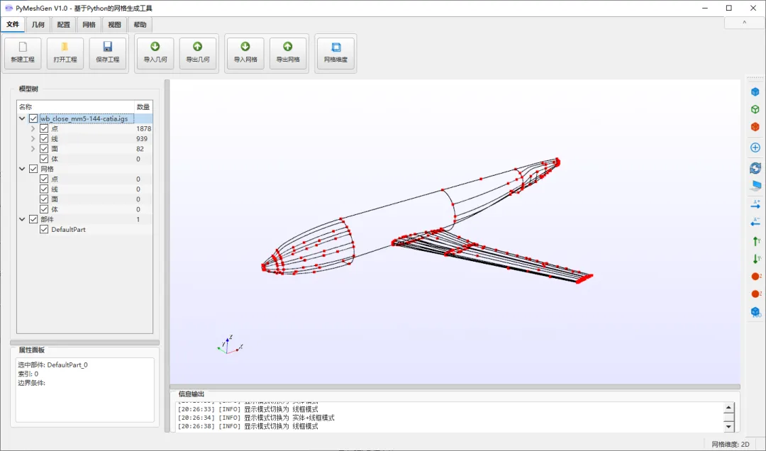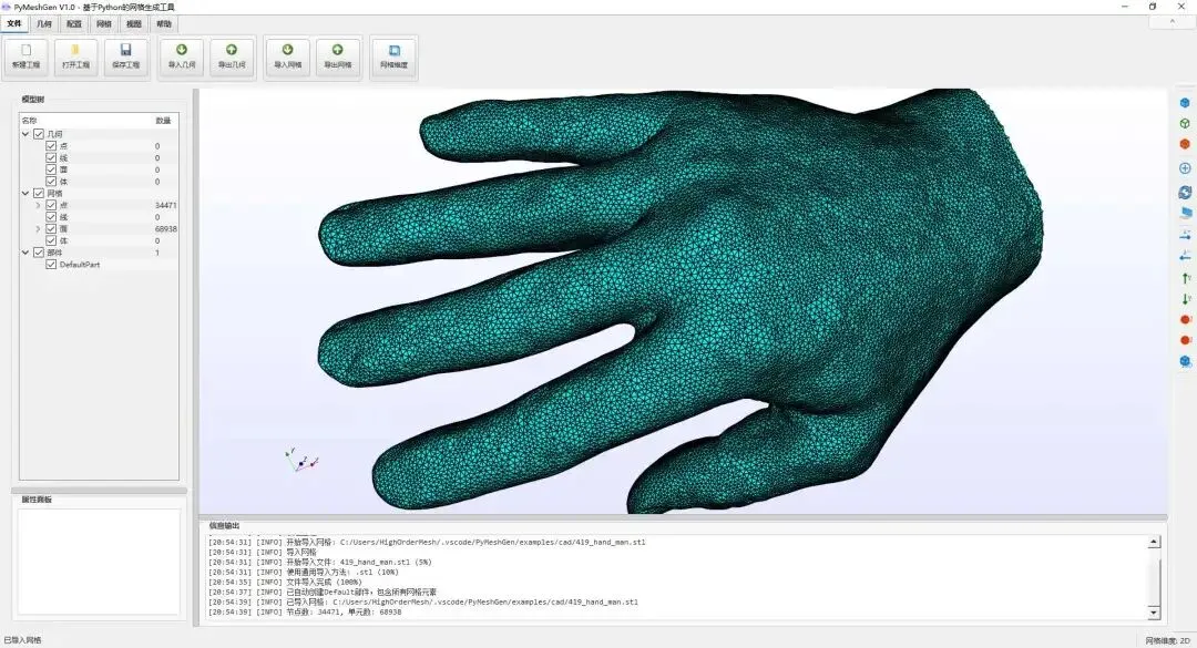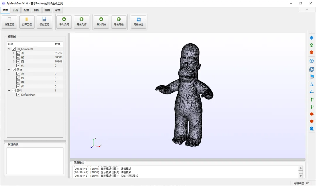 .inp).msh).avs).cgns).xml).e, .exo).f3grid).h5m).msh - 支持 2.2, 4.0, 4.1 版本).mdpa).mesh, .meshb).med).bdf, .fem, .nas).vol, .vol.gz).obj).off).post, .post.gz, .dato, .dato.gz).ply).stl).su2).dat).node, .ele).ugrid).vtk).vtu).wkt).xdmf, .xmf).hmf)BUG_ID1:在元素显示模式下无法切换显示模式