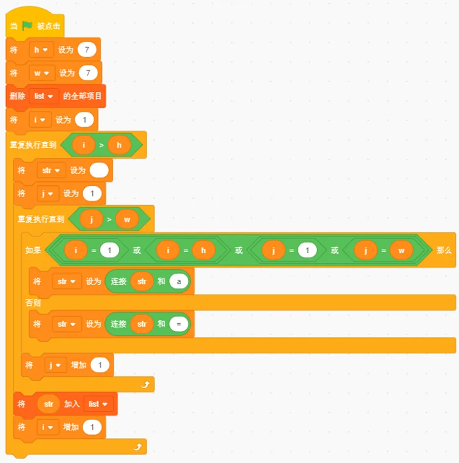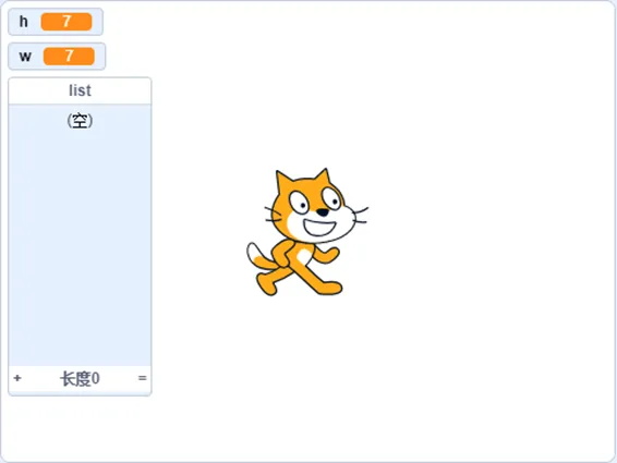 新建列表用于存储最后生成的矩形,注意每次点击绿旗之后都需要清空该列表,然后再向内插入数据。