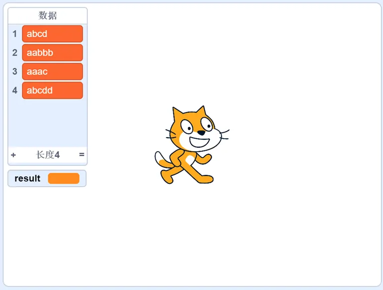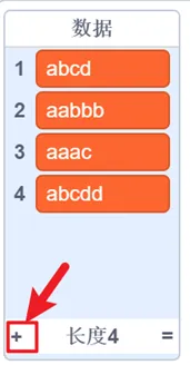 新建列表“数据”,用于存储等待判断的字符串。
