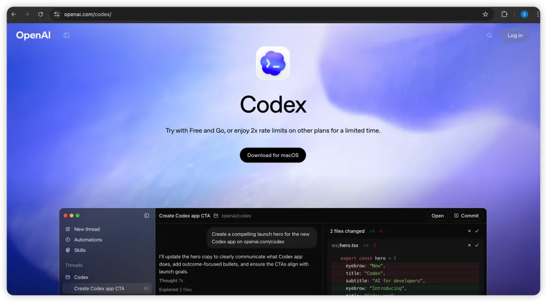最近(2026年2月),OpenAI 又发布了 Codex 桌面 app,让多代理协同构建代码更方便。
