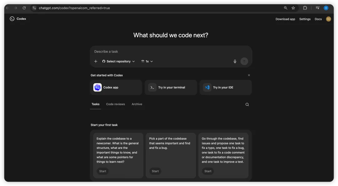 If you don't aim hight you will never hit high. 不立大志,难攀高峰。这几个月,AI 编程工具火得一塌糊涂,其中最有话题性、最能提高开发效率的当属 OpenAI 的 Codex。今天在我的GPT中看到了Codex的广告,于是进去看了一下,可以跟不平代码托管平台连接。