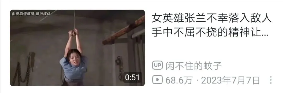这种本质是看过《红岩》那代人对女烈士的幻想,往往都有女人、严刑拷打、冰冷的镣铐、紧缚的绳索、无奈的肢体、屈辱的泪水、愤怒的反抗等要素,关键是还非常政治正确,男性可以安全入坑,比较隐秘。