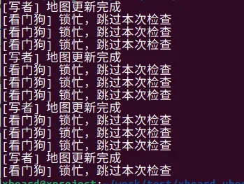 #include <stdio.h>#include <stdlib.h>#include <pthread.h>#include <unistd.h>int sensor_map[10];pthread_rwlock_t rwlock = PTHREAD_RWLOCK_INITIALIZER;// 检查线程(非阻塞)void* watchdog_thread(void *arg) { while (1) { int ret = pthread_rwlock_tryrdlock(&rwlock); if (ret == 0) { // 成功拿到锁,检查数据 printf("[看门狗] 检查状态: map[0]=%d\n", sensor_map[0]); pthread_rwlock_unlock(&rwlock); } else { // 锁被占用(可能在写),不等待,直接跳过本次检查 printf("[看门狗] 锁忙,跳过本次检查\n"); } sleep(1); } return NULL;}// 更新线程void* writer_thread(void *arg) { int val = 0; while (1) { pthread_rwlock_wrlock(&rwlock); for(int i=0; i<10; i++) sensor_map[i] = ++val; printf("[写者] 地图更新完成\n"); sleep(3); // 模拟长写操作,故意占锁久一点 pthread_rwlock_unlock(&rwlock); } return NULL;}int main() { pthread_t w, dog; pthread_create(&w, NULL, writer_thread, NULL); pthread_create(&dog, NULL, watchdog_thread, NULL); sleep(10); return 0;}运行结果