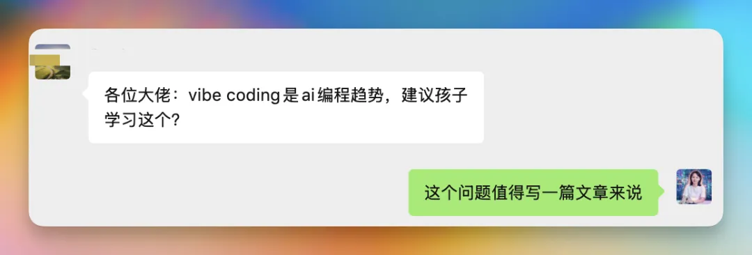 正好之前群里有人提问,是否建议孩子学习AI编程,借着这个活生生的例子,我来分享下我的看法。