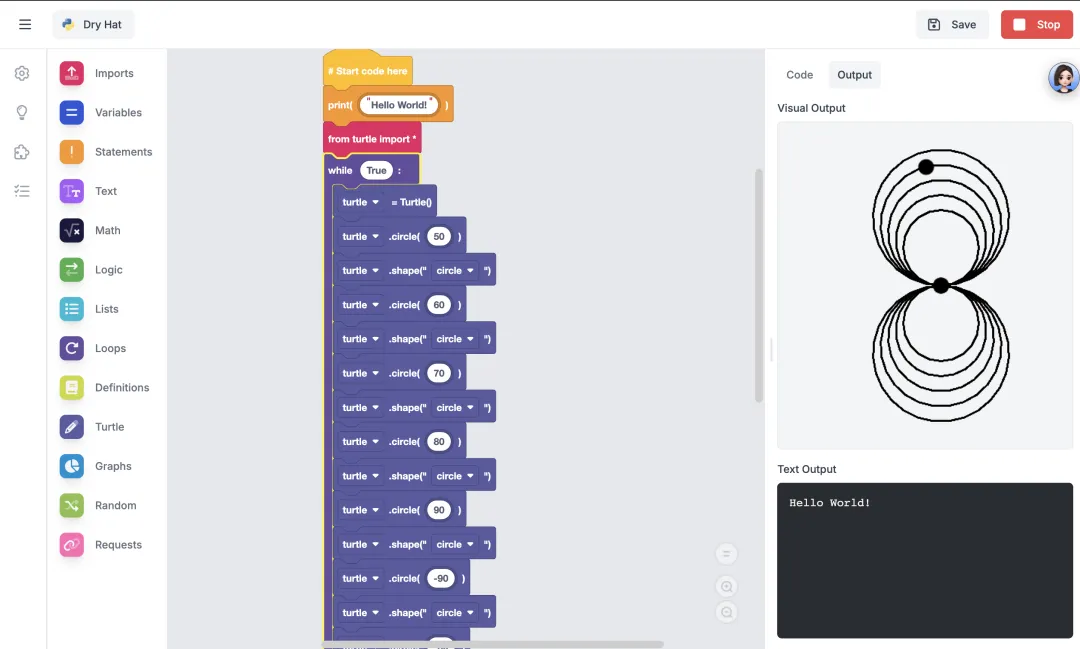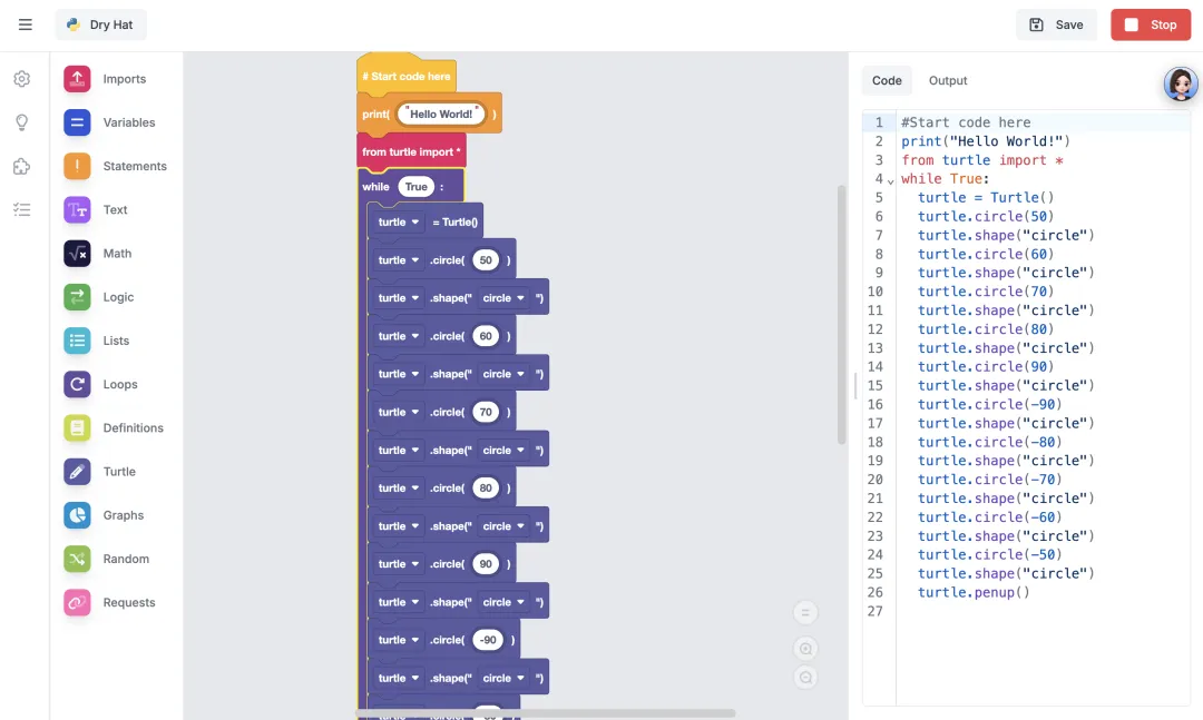 而EduBlocks刚刚好,它保留了Scratch的可视化,同时让他看到了真实的Python代码。他可以通过拖动积木块来学习代码的结构,也可以通过修改代码来理解编程的逻辑。