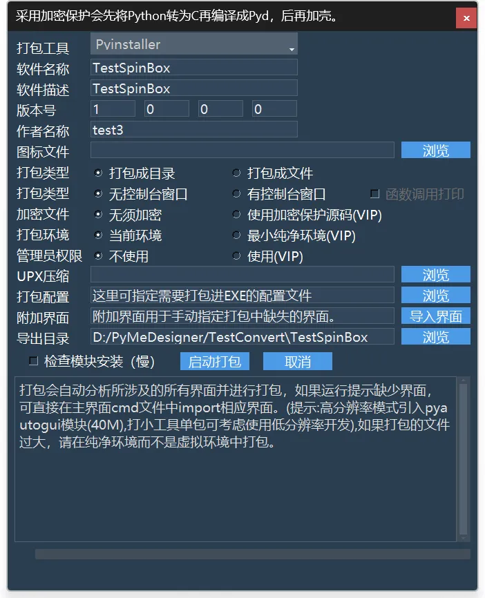 大家好,作为一个Python开发者,你是不是经常需要将Python工程打包成EXE呢? 当然,网上太多教程如何用命令行来打包EXE,我今天教大家一个更简单的方法,可以让大家随时对Python文件进行打包。不过首先我们需要下载一款强大的Python开发工具《PyMe》并进行简单设置,下面我们开始吧! 首先,下载这款Python开发工具《PyMe》 1.5.6.5: https://pyme.lanzoum.com/iQMxg3hp8dli 下载后解压,然后我们用右键单击PyMe.exe,在弹出菜单里用管理员权限启动PyMe。 启动PyMe后,我们点击右边的“体验用户点击登录”图标,进入到登录窗口。 在登录界面,点击右边的“注册新账号”,注册一个账号。 进入到注册界面,填写信息并点击“同意《PyMe》用户协议,完成注册。 注册完后返回到登录界面,输入账号和密码进行登录,但要注意勾选:“启动时自动登录”,这样你才可以在使用打包功能时免去登录验证。 在“常用设置”里找到”PyMe右键菜单“项,点选“开启”。我们需要将任何Python文件打包EXE时,只需要在Python文件上右键单击,然后点击“打包当前文件”即可。 这时会弹出PyMe的打包界面,这个界面包括了多个打包工具,并且提供了一些简单设置选项,比如选择打包成单文件,或者使用Cython将Python文件转为C再编译打包增强安全性、还提供了最小纯净环境的打包,可以大大降低打包后的体积。 打包的过程是可以看到进度的,结束后会成一个提示对话框。 通过这种方式,你可以非常方便的将Python文件快速转化为EXE。 《PyMe》致立于服务所有Python开发者,如果你觉得不错,就快来体验吧!官网:www.py-me.com