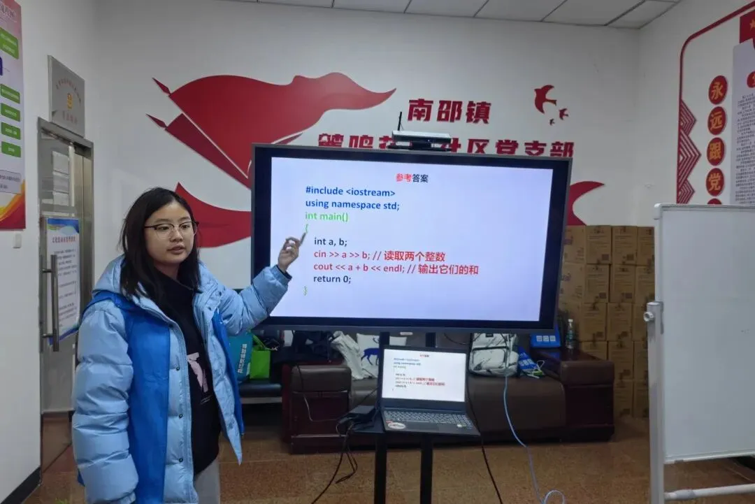 课堂不仅是知识的传授,更是一个互动与启发的过程。志愿者们通过精心设计的编程案例,帮助孩子们加深对编程概念的理解,并激发了他们的思考能力。孩子们在课堂上积极提问、热情讨论,志愿者们耐心解答,引导他们一步步走向更高效的编程实践。整个课堂氛围既紧张又充满乐趣。