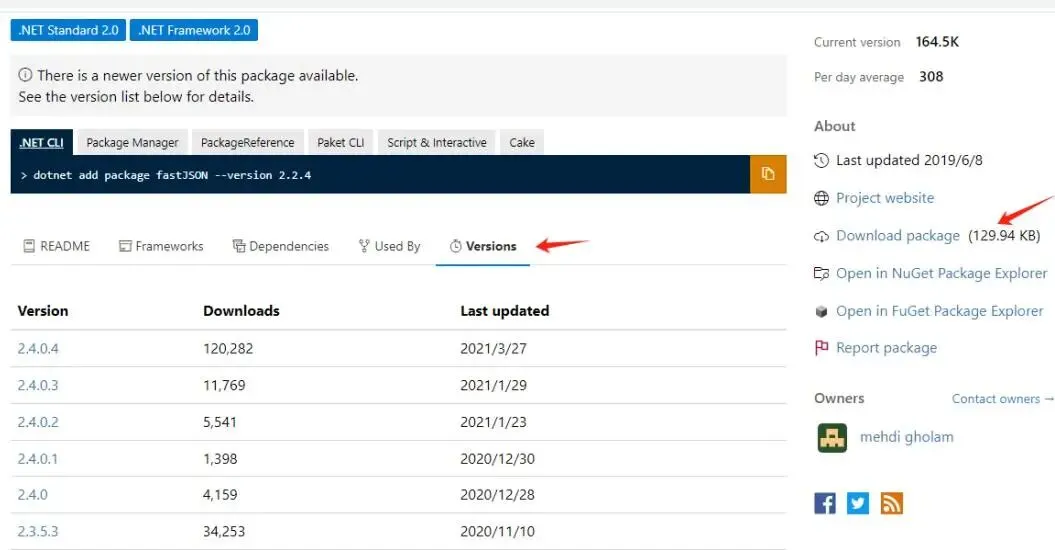 找到所需版本的 FastJSON,下载对应的 NuGet 包。NuGet 包是 .nupkg 文件。