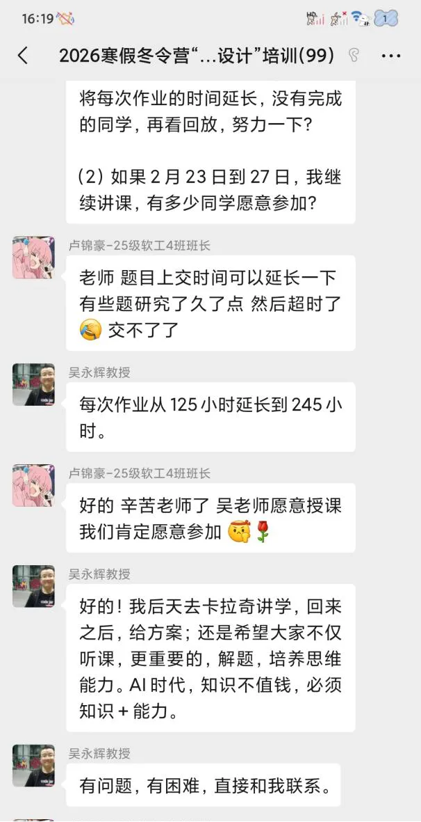 冬令营自1月25日至1月29日开展,每日上午进行线上授课,下午则围绕当授课内容开展解题练习。培训内容循序渐进,涵盖从选择结构、循环结构到数组、函数、指针,再到结构体、链表及排序算法等核心知识点,形成完整的学习闭环。培训中不仅有理论讲解,吴教授还会结合题目进行实时解析与程序指导,真正实现“讲、练、评”一体化教学。