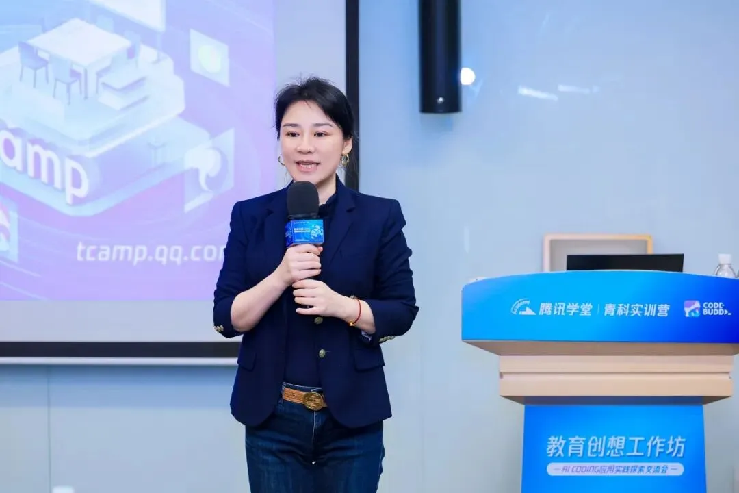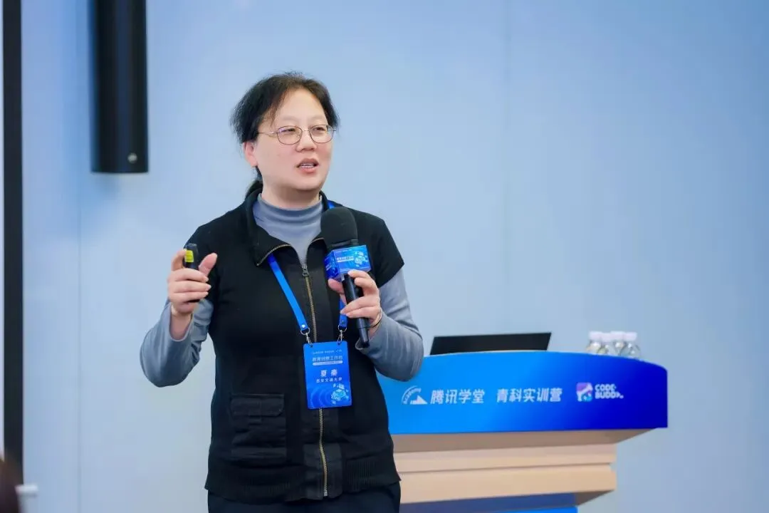 在热烈的氛围中,本次腾讯教育创想工作坊正式启动。腾讯学堂TCAMP负责人凌云女士在致辞中提到,当前AI技术正以前所未有的速度重塑教育生态,编程教育也已从单一的技能传授,转向跨学科、重实践、强创新的综合素养培育。腾讯青科实训营将持续投入资源,联合高校与行业伙伴,共同探索AI与编程深度融合的新模式,希望能为未来创新人才的培养贡献一份绵薄之力。她表示,期待与各方伙伴一同探索产学研协同推动教育发展的更多可能。