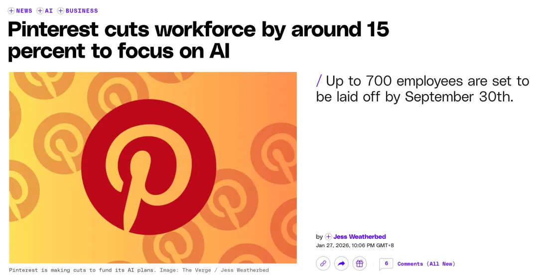 Pinterest 宣布裁员约 15%,全面押注 AI 转型!