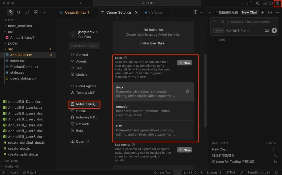 Remotion Skill是AI的“外挂脑插”。它确保了Cursor写出来的代码是符合Remotion规范的、高性能的、能跑通的,而不是一段只能在网页上跑但在视频里跑不通的代码。