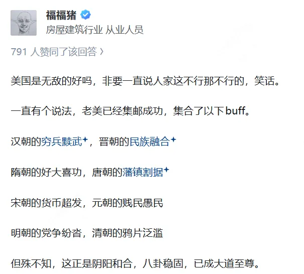 这里作为素材的知乎文字内容上存在一些因为戏说导致偏颇倾向,不管是情绪发泄还是幸灾乐祸,尽管这段文字有意思,但不能作为认知世界的标准看法。