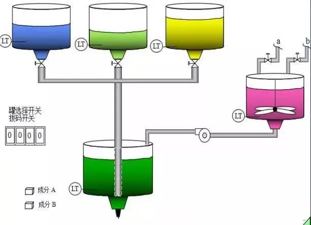 1选择产品添加剂,需要决定哪个罐的成分要加到混合罐内。